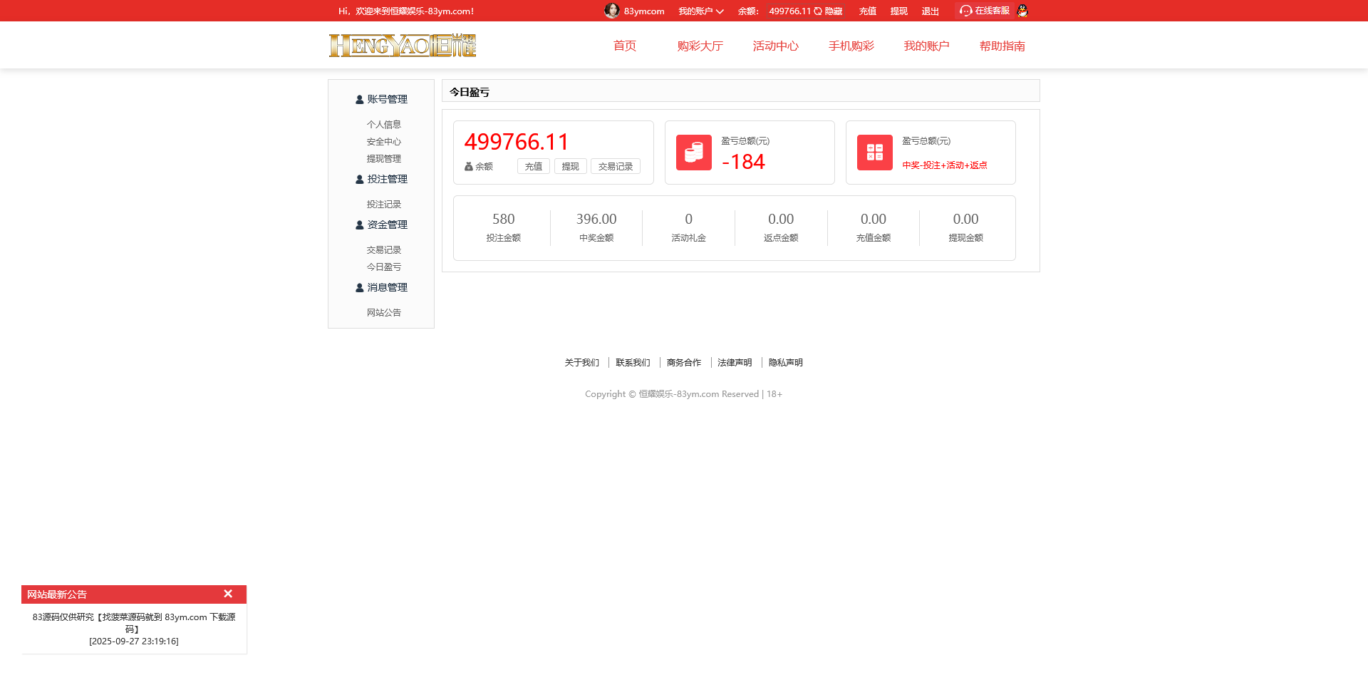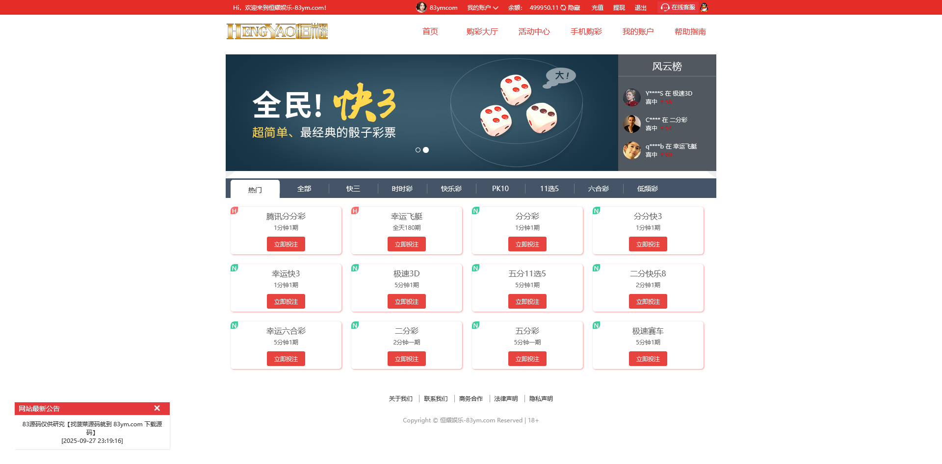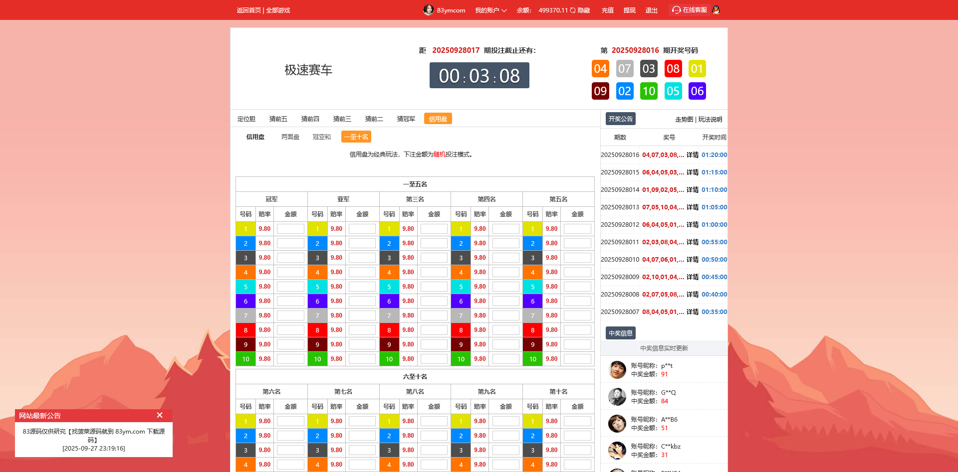 系统采用 信用盘 + 元角分玩法,搭配灵活的 代理模式,非常适合运营与二开定制。