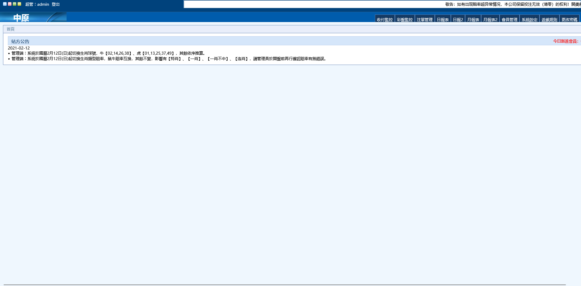 2022虎年中原六合彩盘口源码在 多盘口玩法(ABCD盘) 与 生肖玩法修复 上功能完善,同时优化赔率差、增加改包功能,更适合灵活运营。PHP开发搭建简易,源码安全性也已处理,属于一套可直接使用或二开的源码版本。