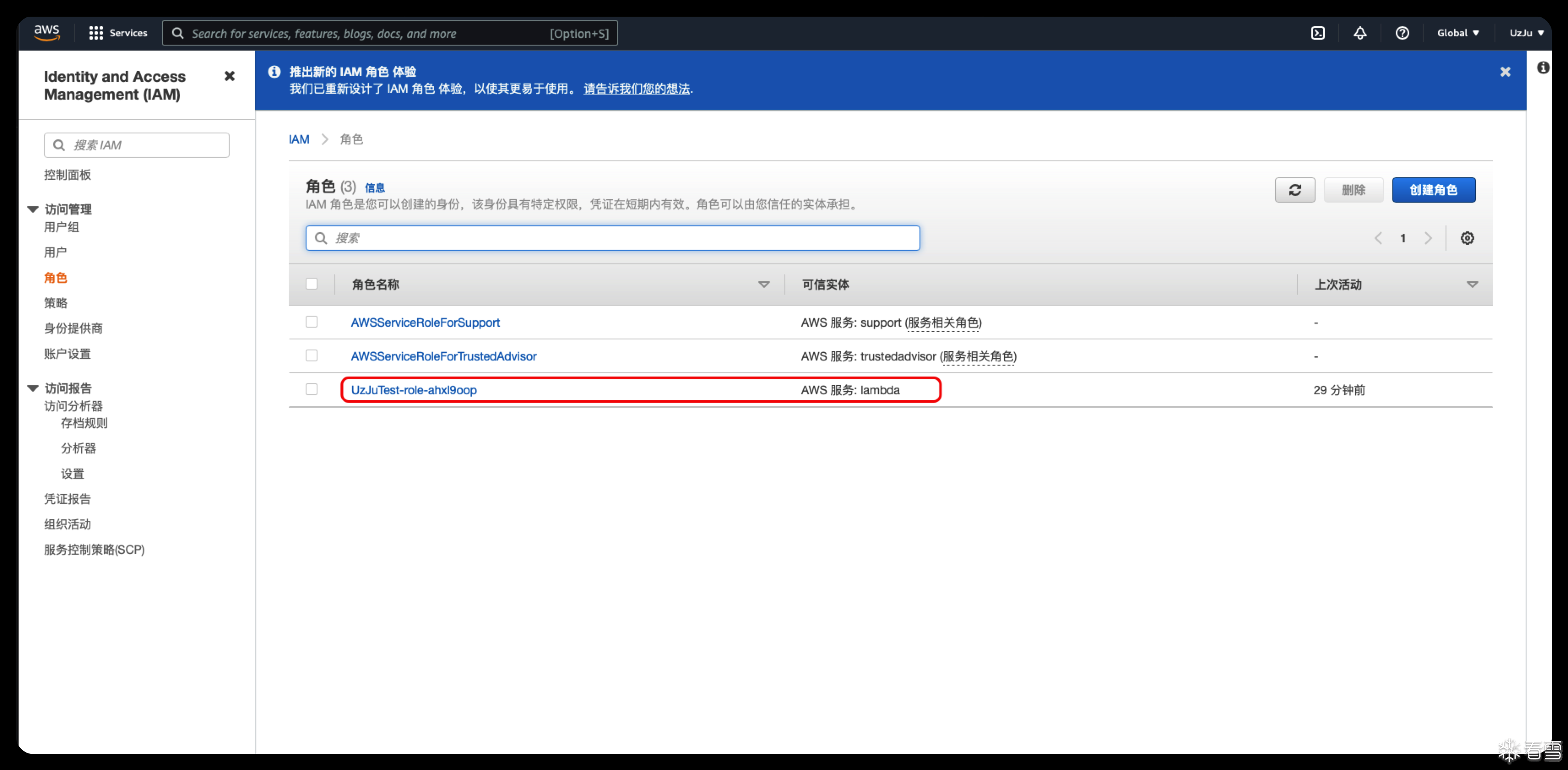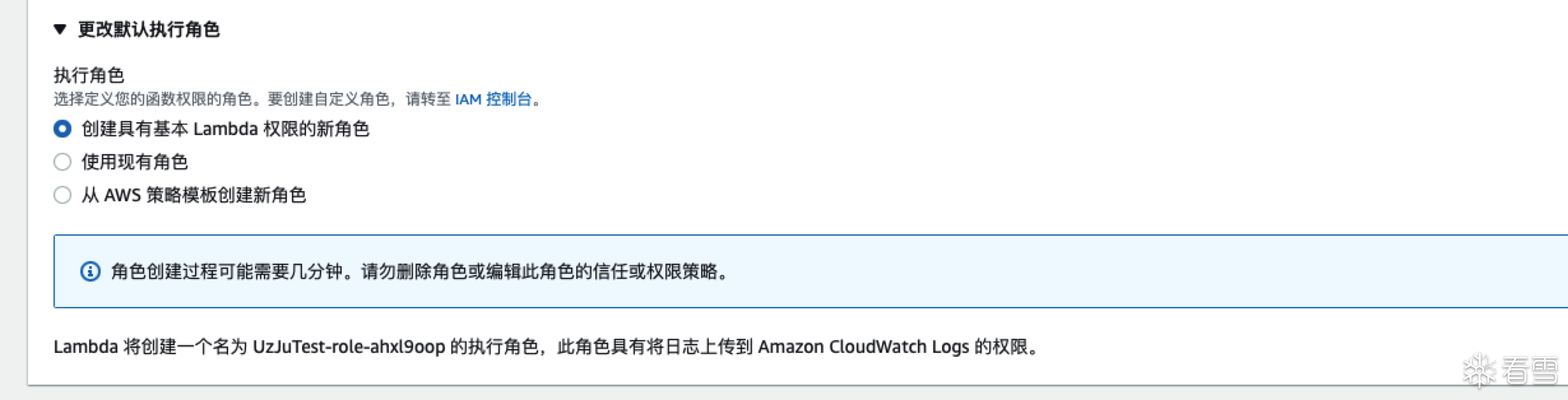 并且我们对执行的角色也是用默认的选项