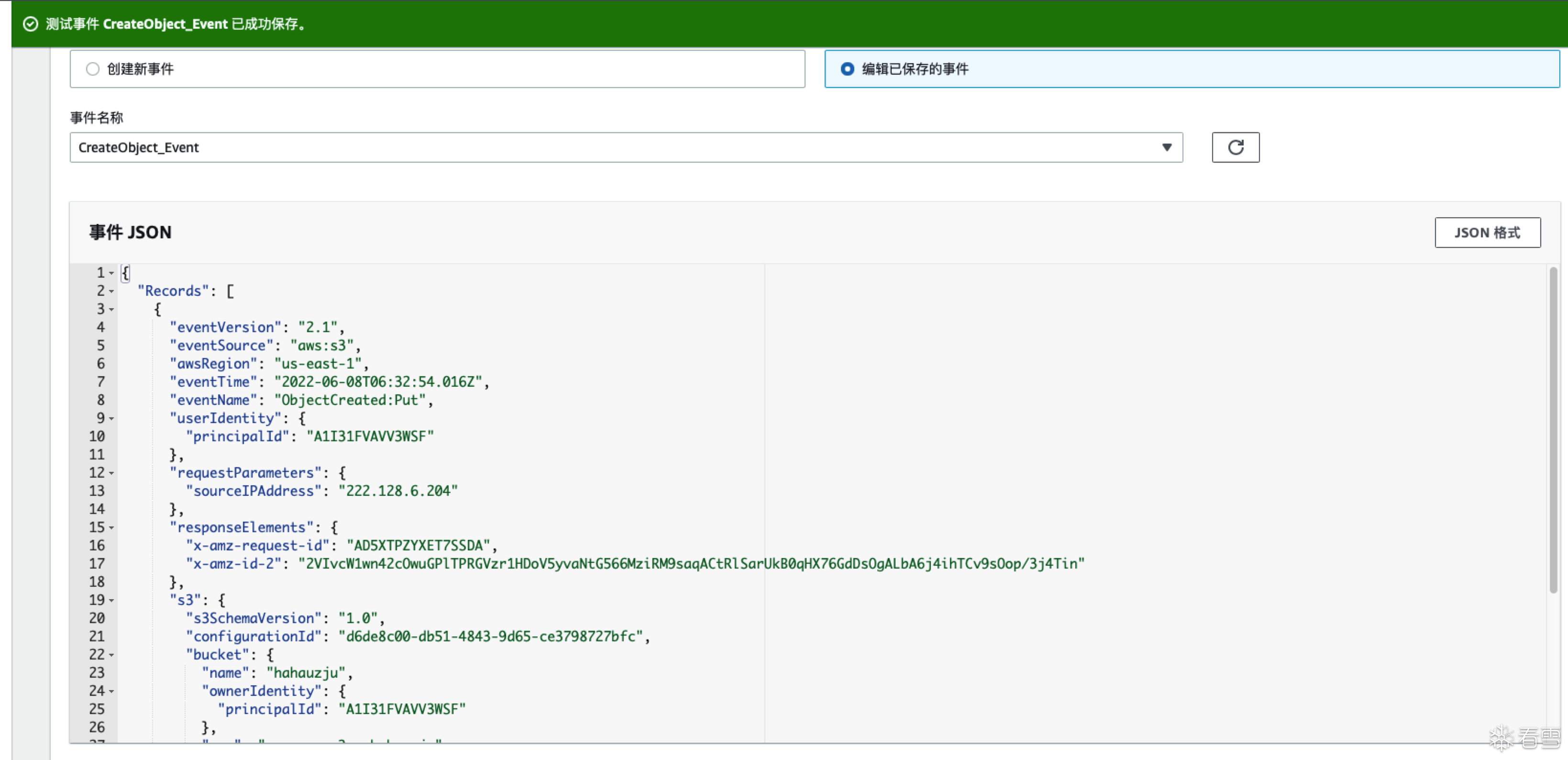在我们开始编写函数前,我们需要知道,在S3上传对象时,所获取到的内容是什么样子的
