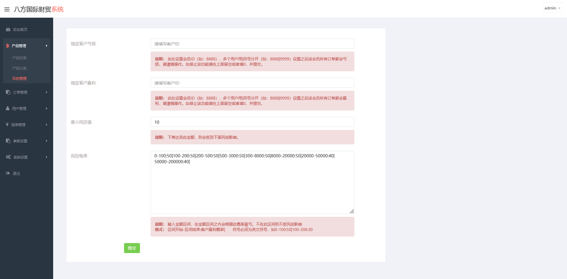 可对指定客户设置强制“亏损”或“盈利”策略(用于风控或市场操作);