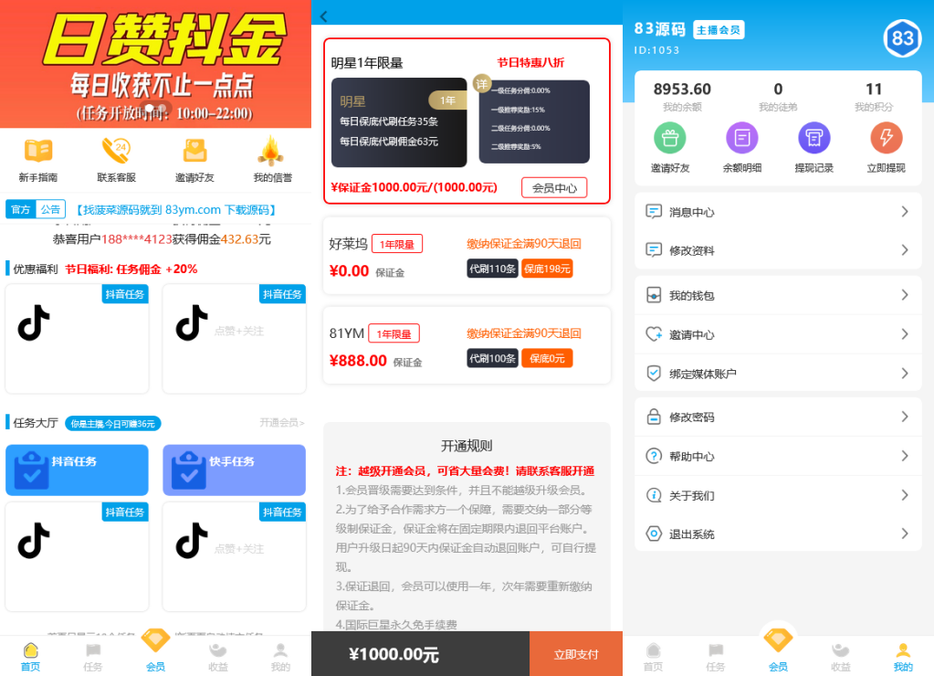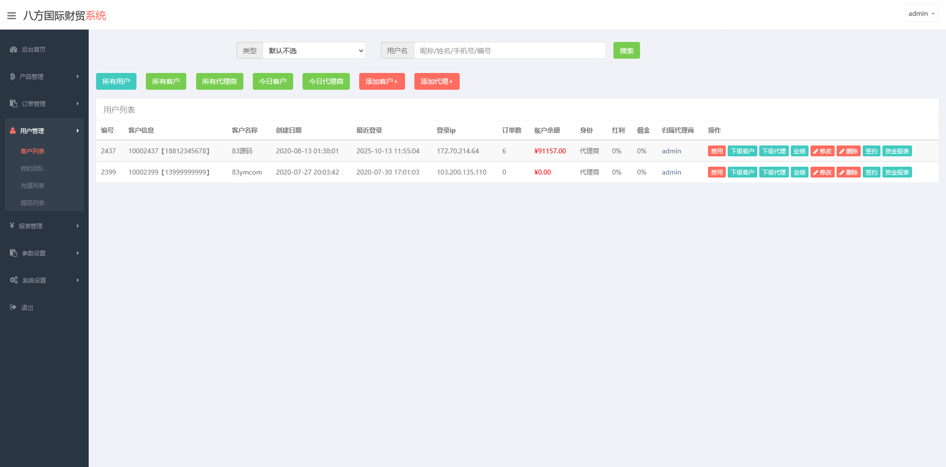 会员管理、资金流水、充值提现审核、订单管理;
