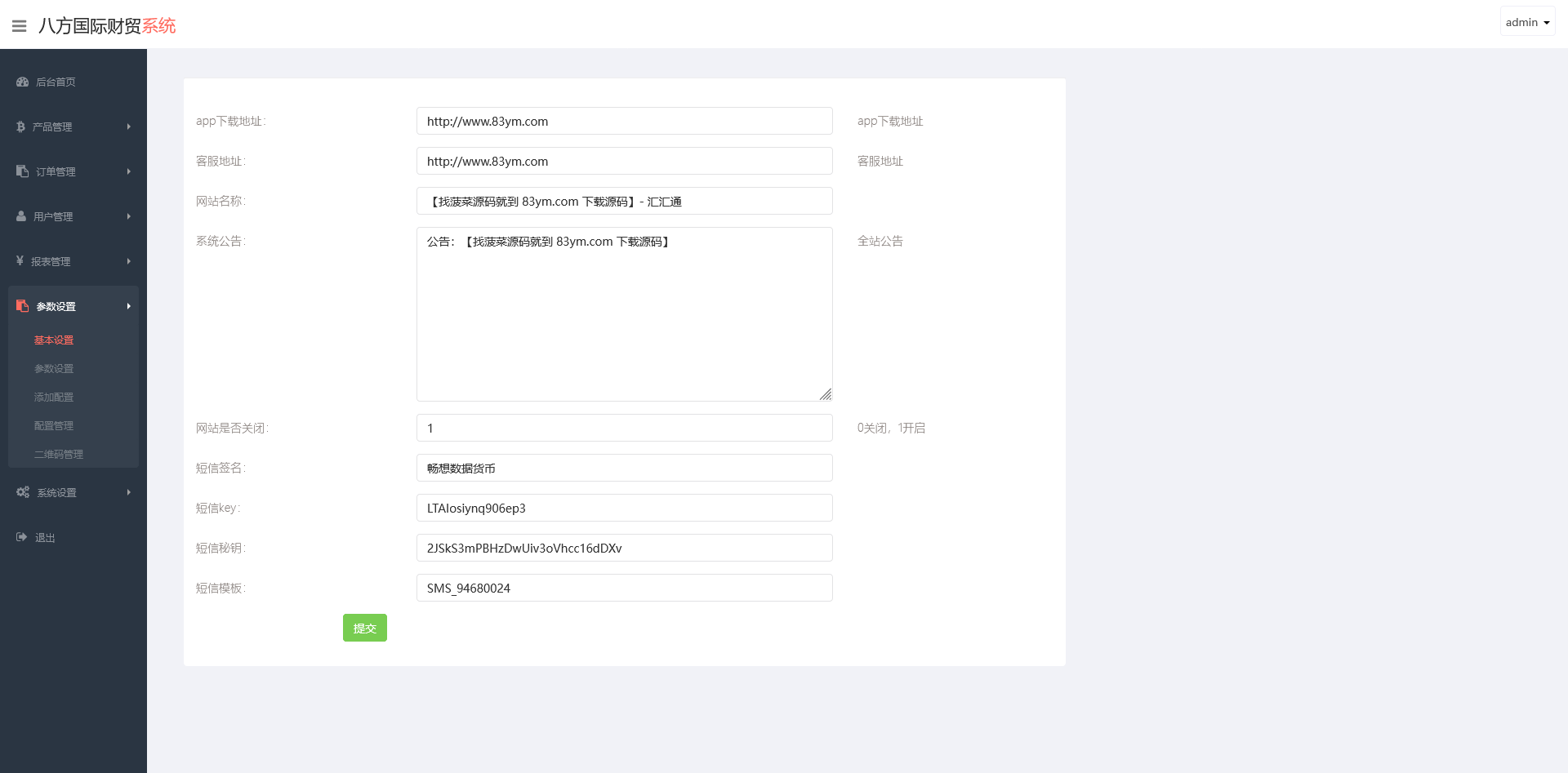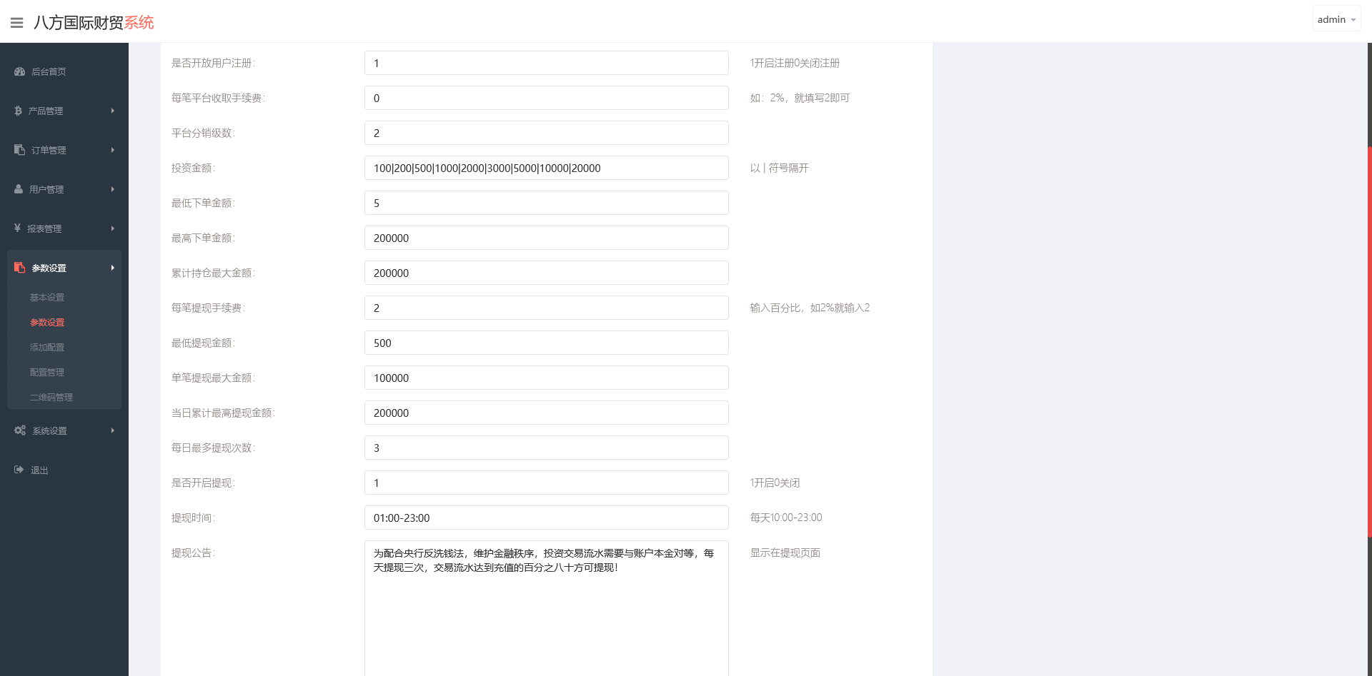 多语言文案管理、公告、活动管理、分润/代理设置;
