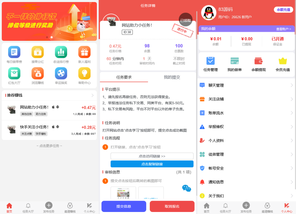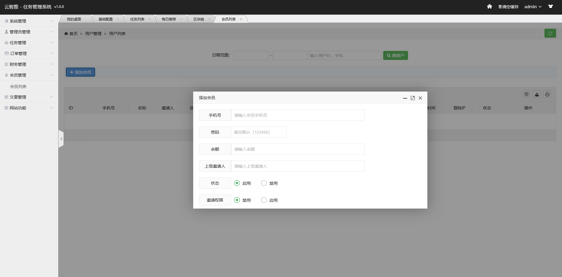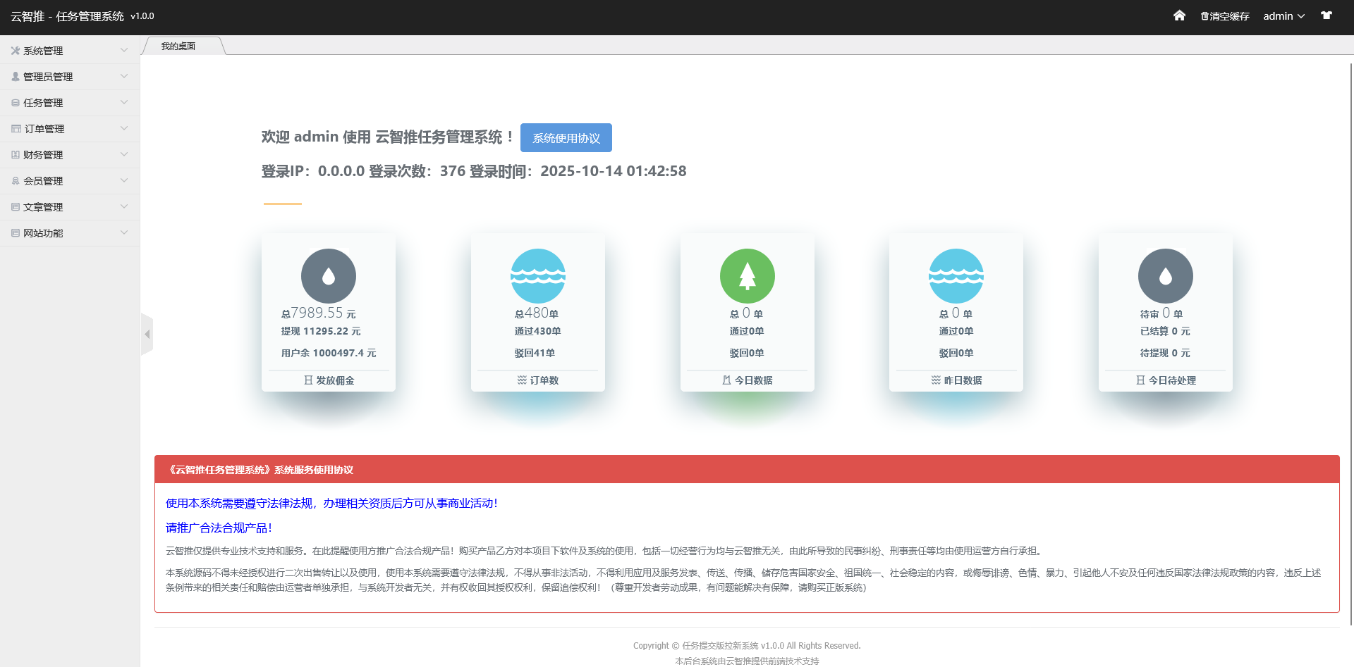 云智推任务做单系统提交版,任务分销系统、拉新系统源码、附带文字教程,可h5封装app。