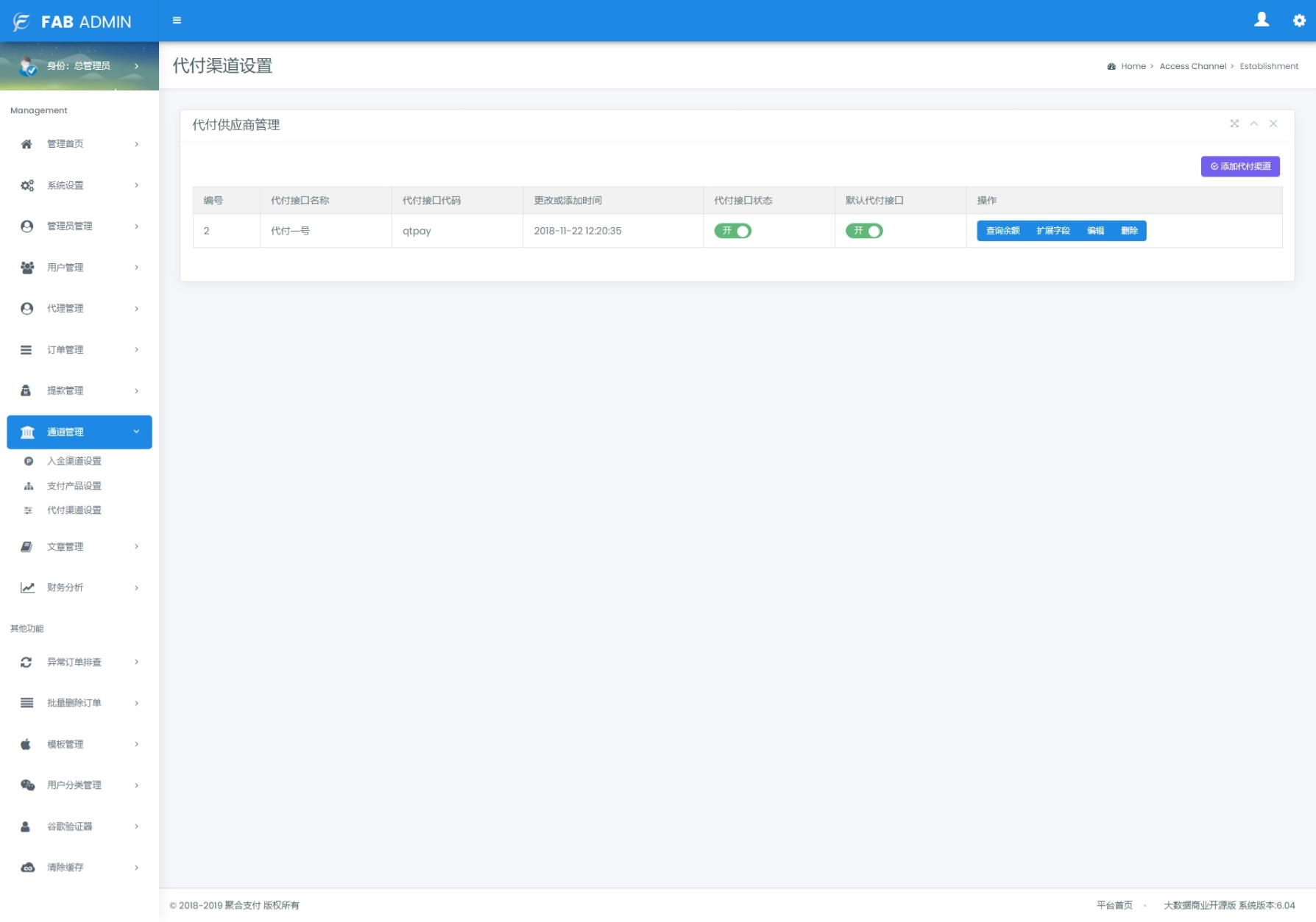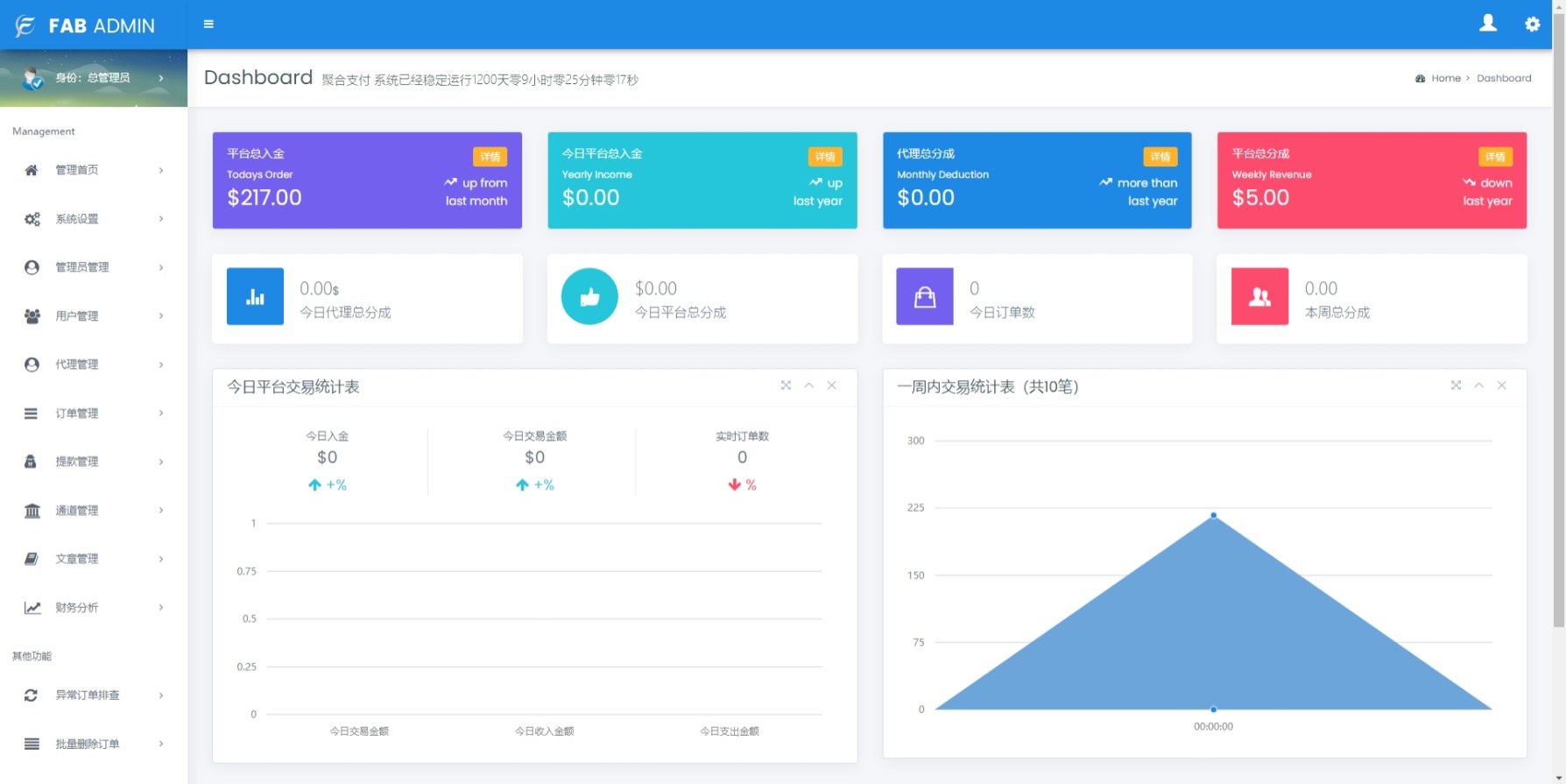完善的数据报表模块,支持按天、通道、商户维度分析。