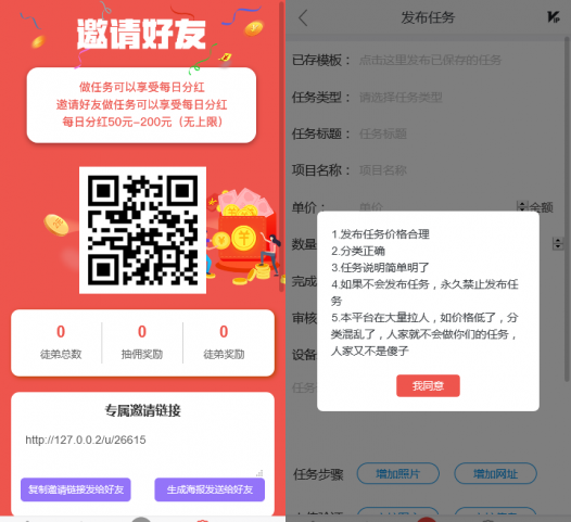 运营逻辑清晰:任务审核自动化,分润规则灵活;
