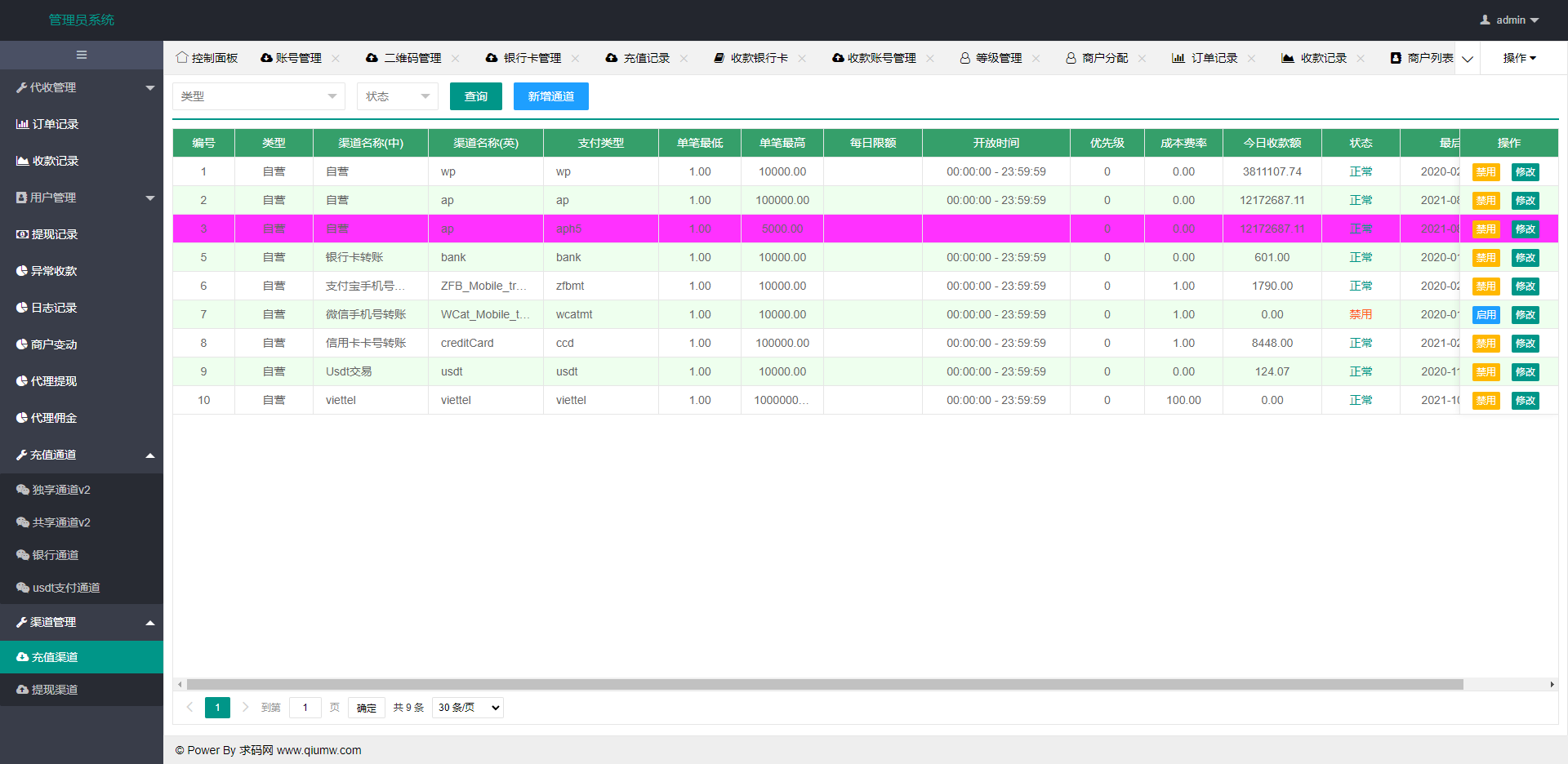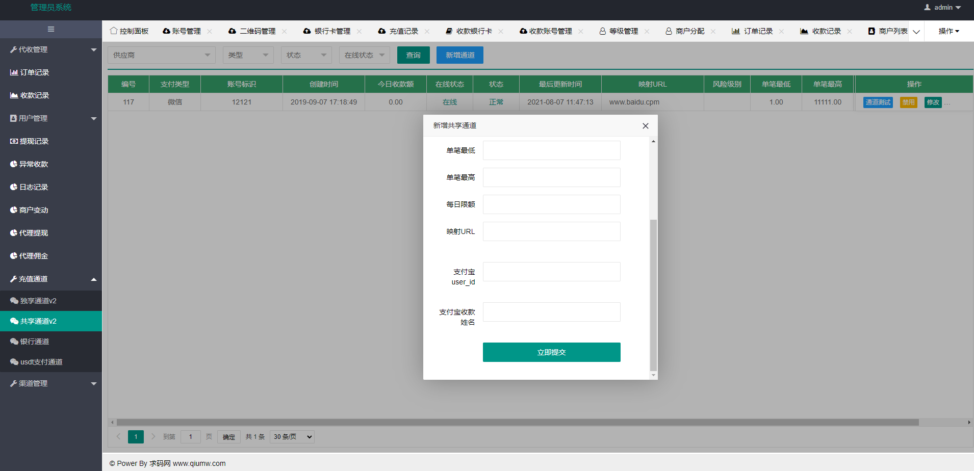 后台可设置多通道轮巡规则,系统自动判断通道状态与余额分配。
