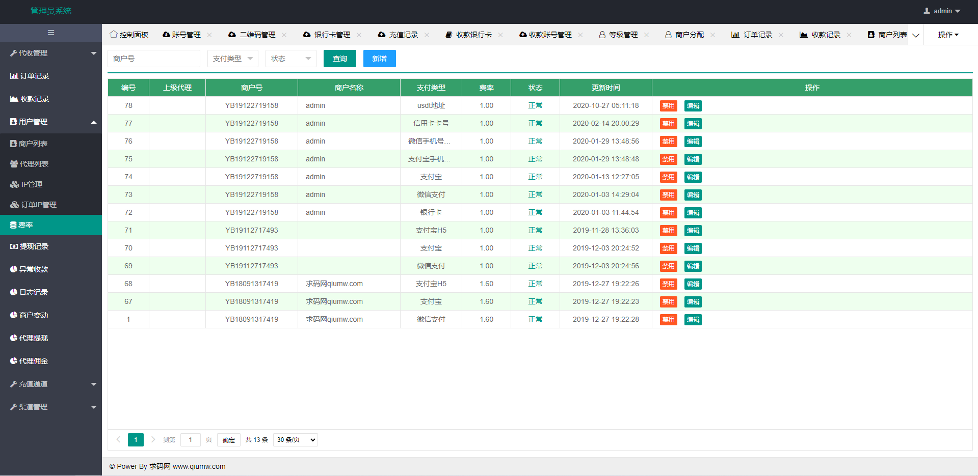 系统结构清晰,后台功能完整,包含 商户端、代理端、管理端 三大模块,可快速搭建属于自己的 码商聚合支付与代收结算平台。