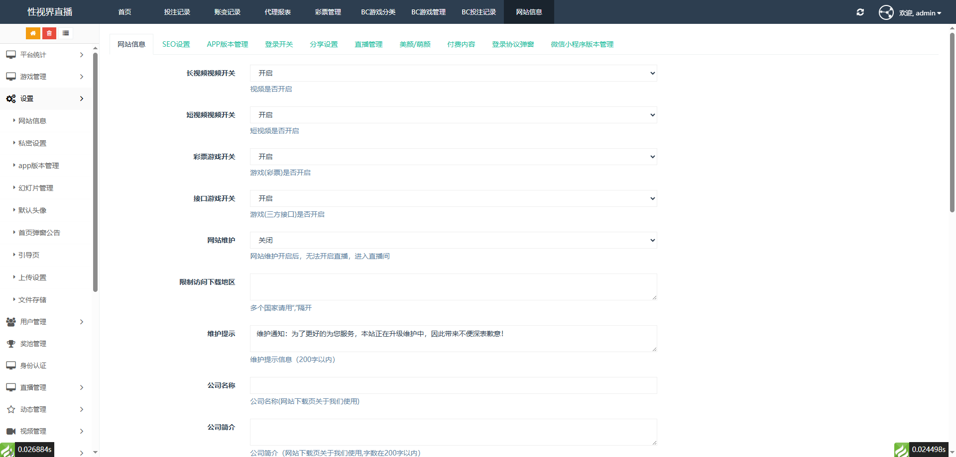 核心功能:集成包括全球低延迟推流(腾讯云国际)、200+平台直播源采集、NG三方游戏接入、奖池算法稳控利润。