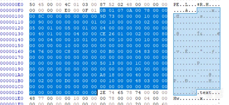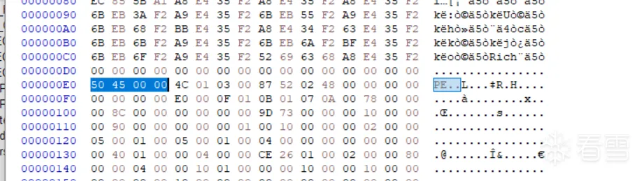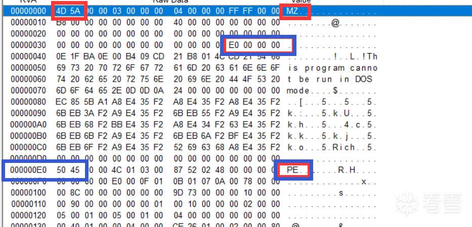 通过后缀名判断文件格式是不靠谱的,因为后缀名是可以随意更改的,我们用一个十六进制编辑器打开一个文件,如果他的开头是MZ,且0x3c–0x3f所指示的偏移地址处的值是PE那么我们几乎可以肯定这是个PE文件。