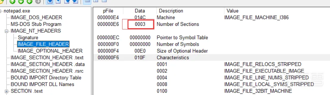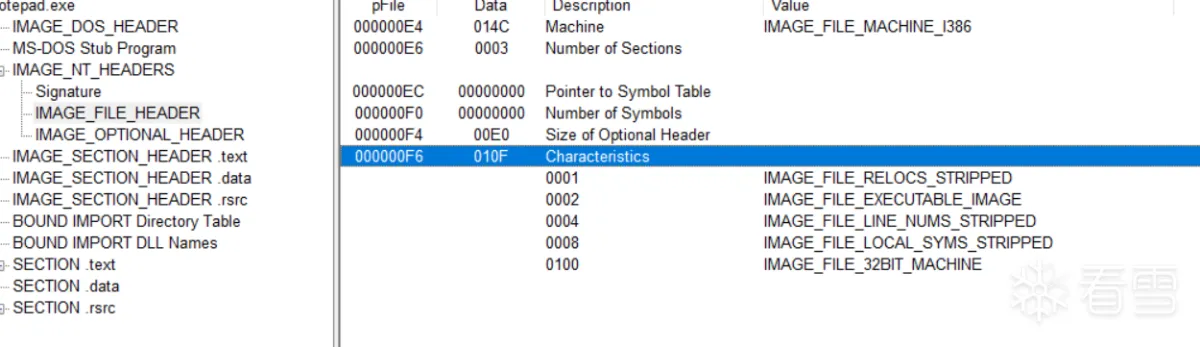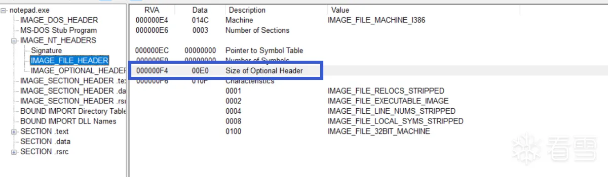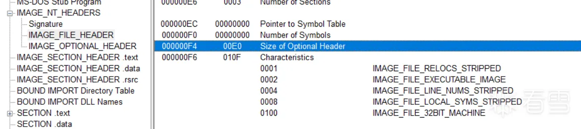 两个字节,因为可选头长度是不固定的,该成员记录MAGE_OPTIONAL_HEADER的大小,32位默认是0xE0,64位默认是0xF0。如果可选头长度更改,也要对应修改这里。