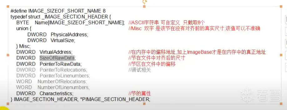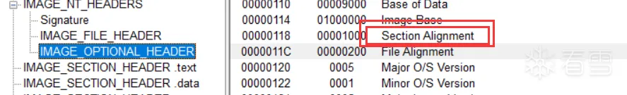 大小要满足是最小单位的整数倍,这样做可以提高效率。牺牲一定空间换取时间。节数据也要满足文件对齐。文件对齐上面的成员记录着内存对齐的大小,即程序加载到内存中后的对齐单位