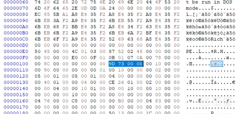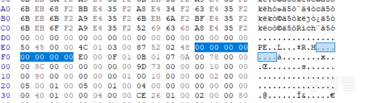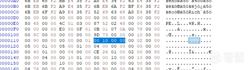 - MS_DOS Stu,DOS存根,大小是不固定的,链接器会在这里插入数据,不影响程序运行,病毒程序可以插入在这里。虽然倒下不固定,但我们可以通过IMAGE_DOS_HEADER结构体的最后一个成员PE头开始的位置,用这个值减去64即DOS存根的大小。