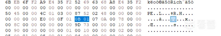 两个字节,标志程序是32位还是64位(最准确)。PE32:10B ;PE32+:20B