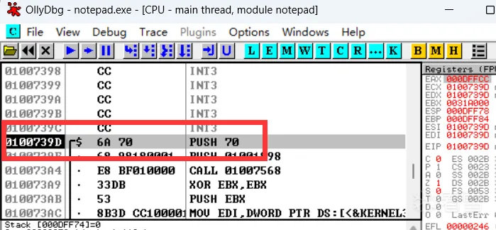那么么该程序就从01000000+0000739D=0100739D, OD会在程序开始设置一个断点,地址就是这里。对这里进行修饰会增加逆向分析的难度,因为调试机器找不到程序入口。