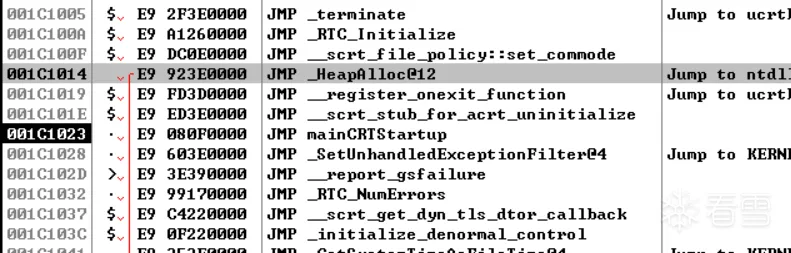 将图一标记位置改为call 1c1023 得到图二,后面的0A=1c1023-1c1019.我们的目标指示让他弹出窗口,不能破坏程序运行,所以弹出之后我们还要跳回到初始位置,让程序正常运行,我们使用JMP(E9)指令来实现该操作,E9后面也是跟偏移量,用法与E8相同。找到messagebox的地址75858A70。根据call指令的位置来计算。