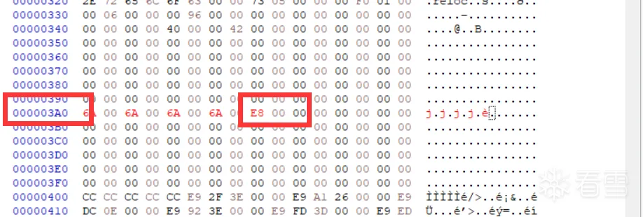 在108处占4个字节,我们插入的程序起始位置是000003A0.然后,然后就没然后了,程序运行不起,ida和od看到的东西都很奇怪,延误了两天,这里我直接说一下踩的坑,我随意找了一个空白处填充机器码,但后来发现不是所有的位置都能发生跳转,然后就将指令插入在了text段的末尾,然后发现跳转的有些差异,不会跳转在我设置的地方,后知后觉的发现,视频里的老哥演示的的时候拿的是一个文件对齐和内存对齐相同大小的程序,我用的程序是一个不同的,所以就要计算一下 用我们前面学习到的知识。下面理一下步骤