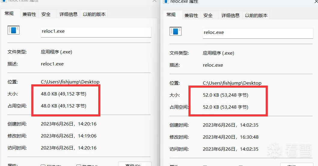 尝试运行,一切正常。左边是删除roloc节区的程序,可以看到大小发生了改变。