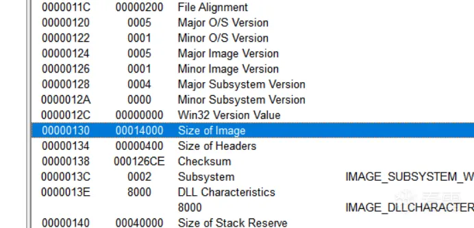 - 修改IMAGE_OPTIONAL_HEADER中的SizeofImage
