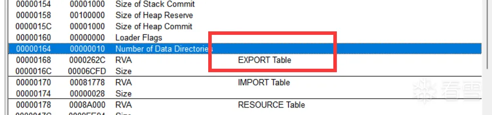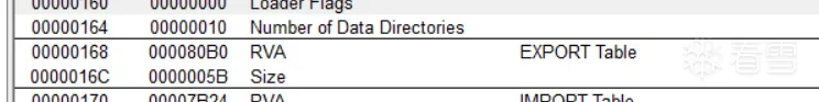 在扩展pe头,最后一个成员,是个结构体数组,这个结构体的第一个成员就存放着导出表的相关信息。