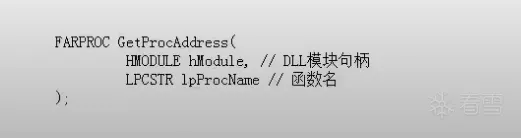这是一个API,它有两个参数,DLL的句柄就是该DLL在内存展开时的地址,函数名