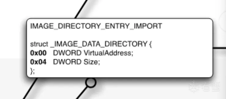 导入表信息位置:在扩展pe头的最后一个成员(结构体数组),该结构体数组的第二个成员记录着导入表信息。