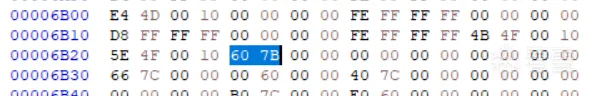 导入表的地址是6B24,6B24处的第一个成员的值是7b60,转换成foa是6b60,IMAGE_THUNK_DATA结构体就在6B60处