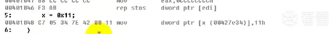 上面的代码的汇编码如下,mov 【00427e34】,11h 由于全局变量使用了硬编码,显然只有加载的特定的位置该代码才能生效。