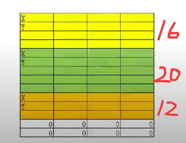 重点: Y后的成员,两字节即16位一组,其实表示有效地址的是低12位,高四位并非没有作用,当高四位位0011的时候,才代表该处的值需要进行修复,比如说第一个成员为0011 0011 1111 1111,前四位为0011,代表该成员需要被修复,取低12位加上X基地址即是真正需要修改的。若高4位不是0011,则该处数据无作用,可以理解为用来内存对齐的垃圾数据。