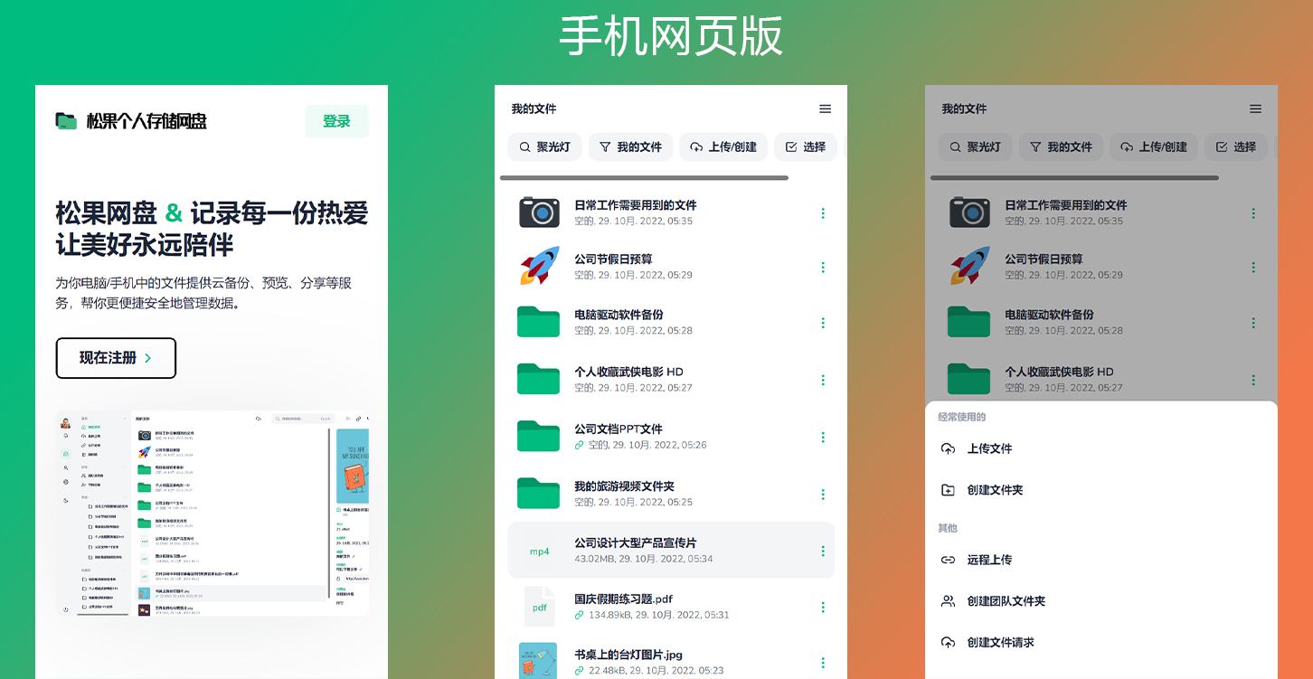 简单快速安装、多语言系统、文件上传、文件夹上传、远程链接直接下载保存、文件在线预览、支持https、支持局域网以端口安装方式访问、兼容最新版PHP8.1版本、白天模式与复眼模式、支持阿里云对象存储、支持FTP存储、用户登录注册、多种方式文件分享、团队协作与分享、自定义图标logo名称与颜色、自定义首页描述、响应是手机版本页面、文件后缀黑名单禁止上传、列表模式与网格模式、照相机原数据显示、大文件上传、还有其他…..