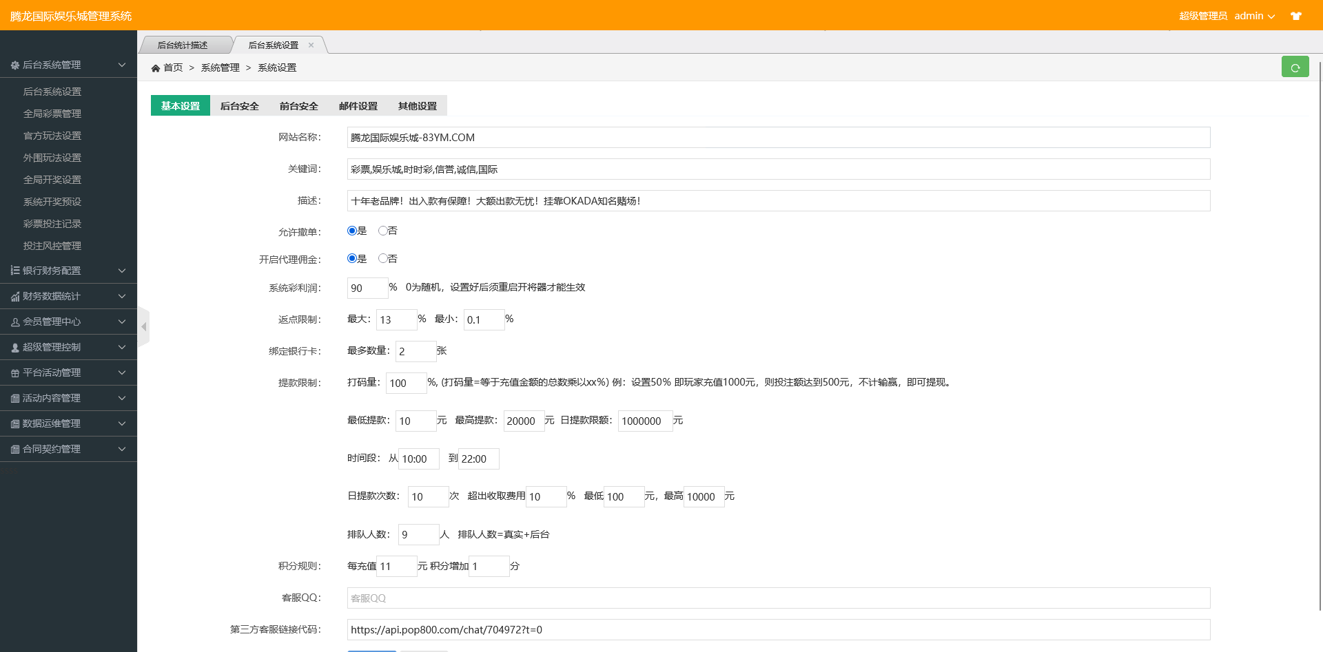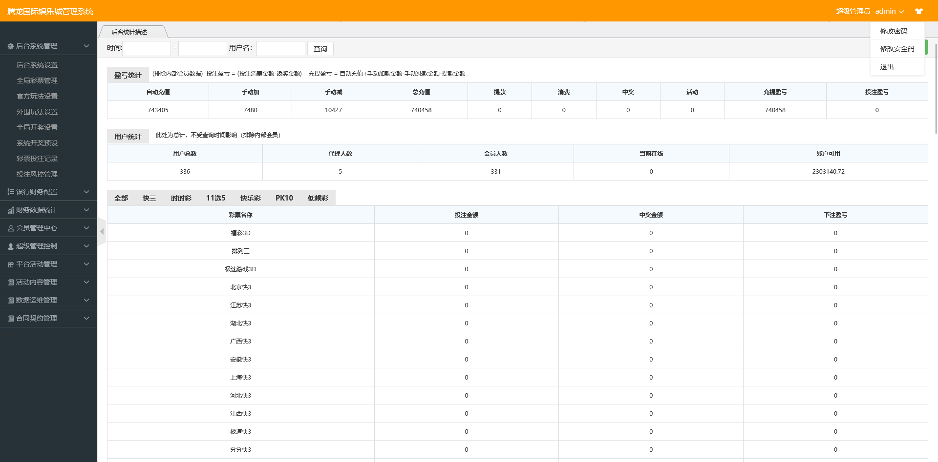 系统内部集成了系统彩概率控杀功能,采集接口稳定流畅,页面界面整体进行了美化优化,更适合正式运营环境使用。