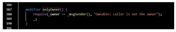 onlyOwner是该合约自定义一个修饰器,用于修饰函数,只有合约的所有者才能调用该函数。