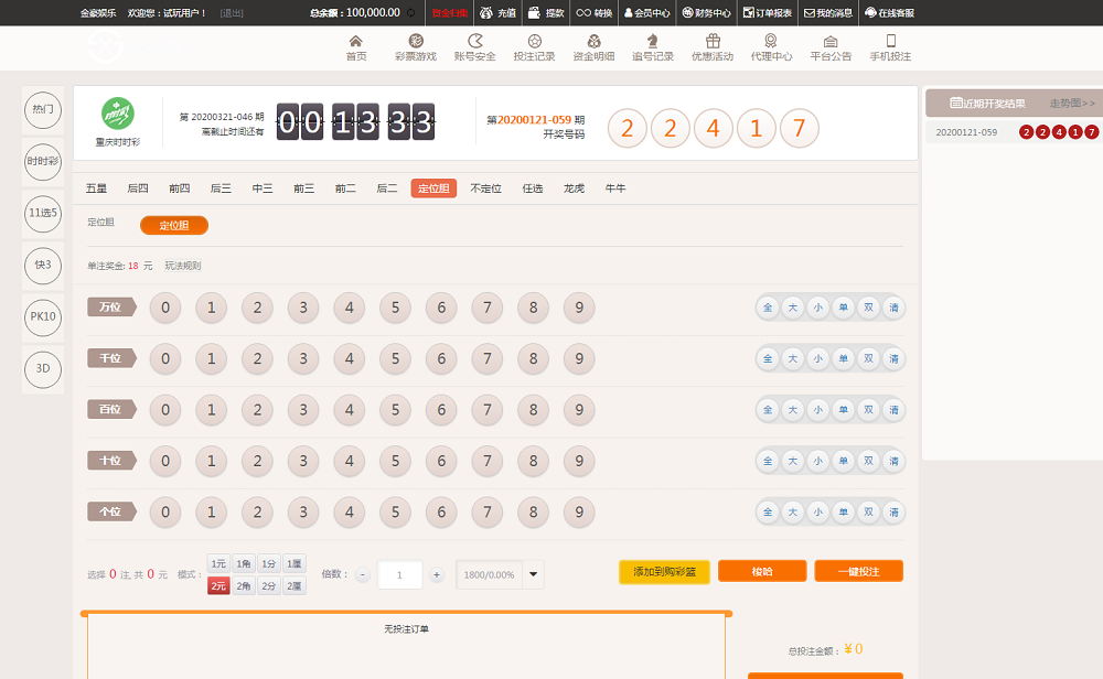 后台功能完整,支持账户管理、开奖管理、数据查看等