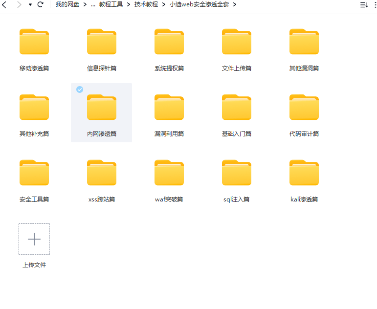 移动渗透篇、信息探针篇、系统提权篇、文件上传篇、其他漏洞篇、其他补充篇、内网渗透篇、漏洞利用篇、基础入门篇、代码审计篇、安全工具篇、xss跨站篇、waf突破篇、sql注入篇、kali渗透篇.