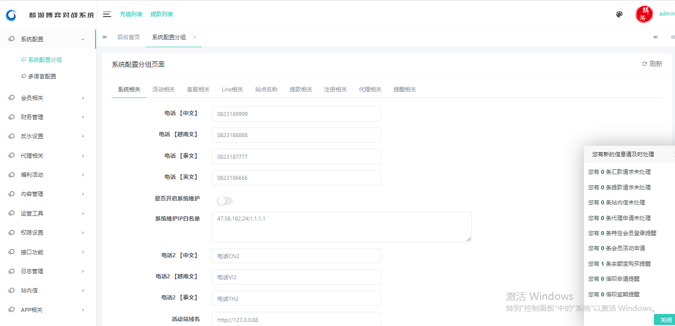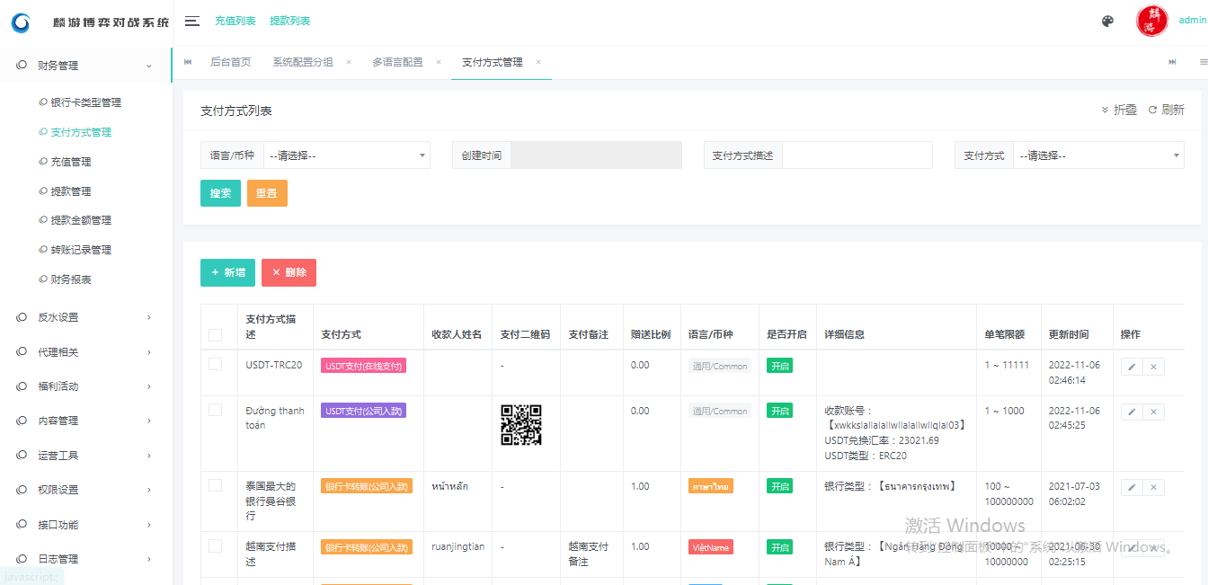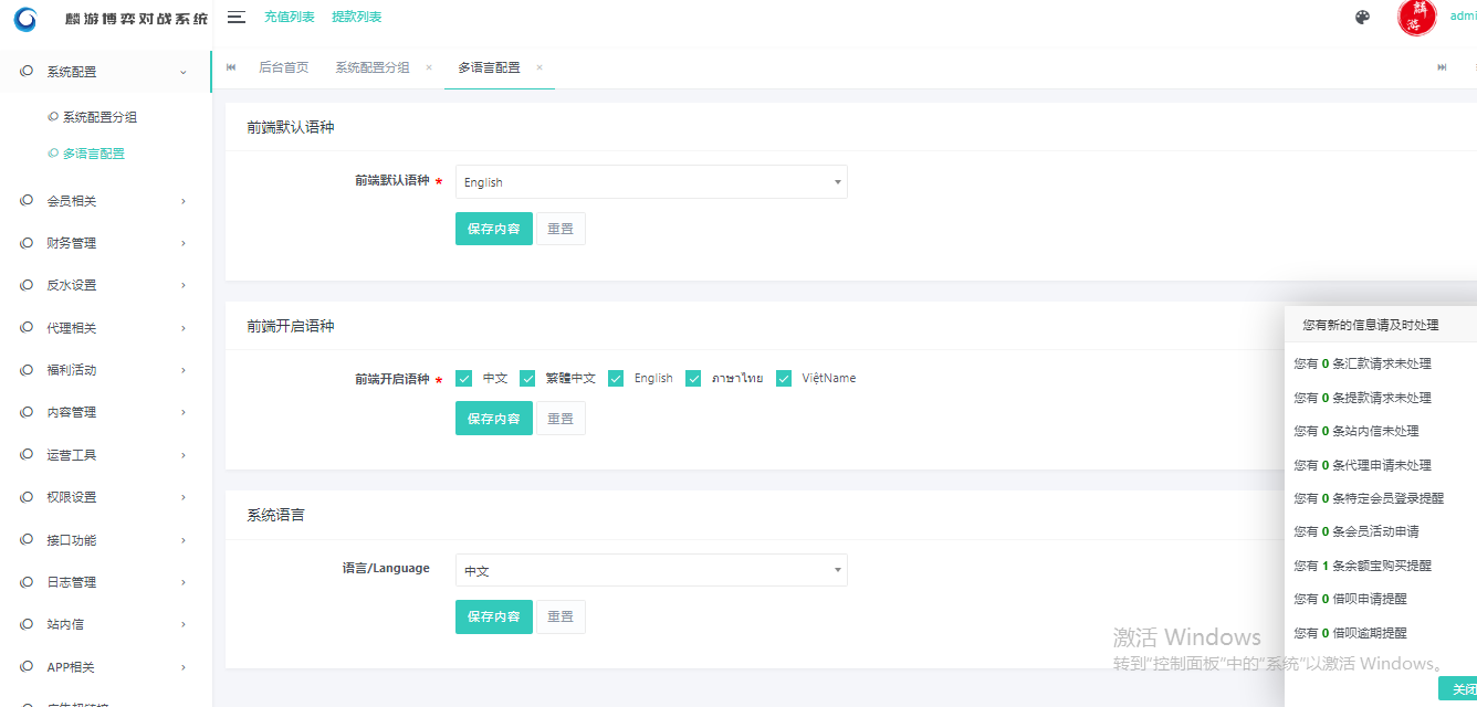 此套源码支持中、英、泰、越、繁体五种语言,满足海外用户多语种运营需求,支持独立代理后台管理系统,适合面向全球市场的博弈平台搭建。