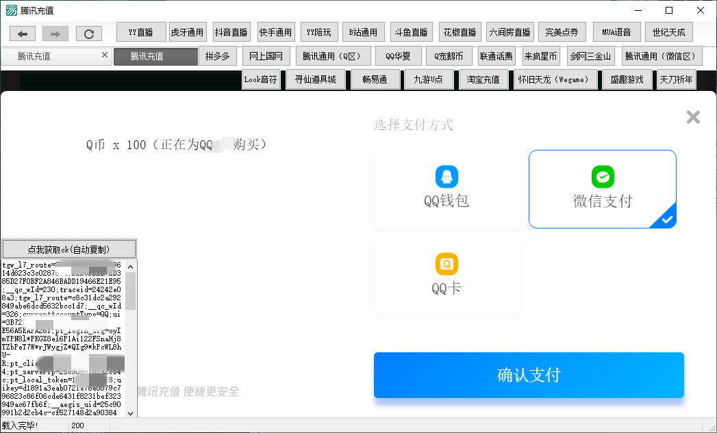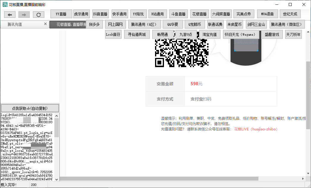 网友分享的一套,易语言开发的YY直播/话费/拼多多/淘宝/花椒直播/抖音/斗鱼CK/腾讯等几十种平台Cookie一键获取,功能俱全。
