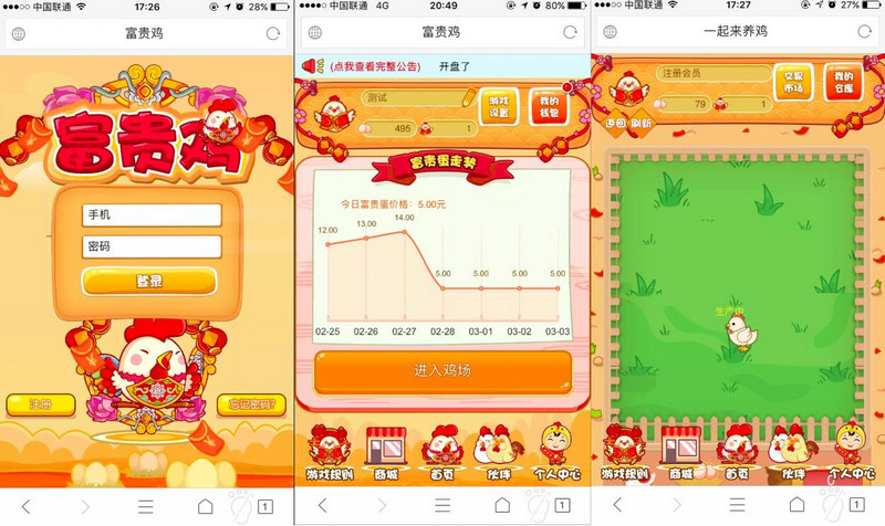 ★动静结合收益高。一个会员直接带动5个好友参与游戏就可以免费获得一只富贵鸡【500个蛋】富贵鸡理财游戏赚钱的渠道:静态收益