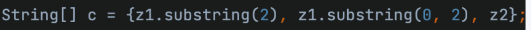 为什么这样可以?很好理解,首先第一个z1.substring(2)取值的时候会自动去掉-c,第二个z1.substring(0, 2)取值的时候会取到-c,那么拼出来就是这样