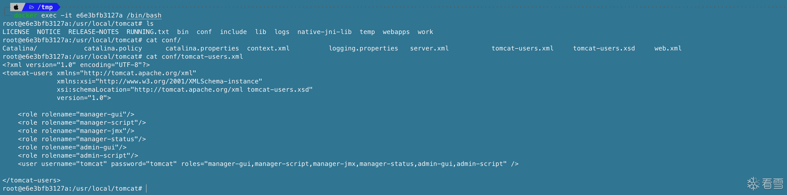 在docker中的tomcat/conf中可以看到账号密码