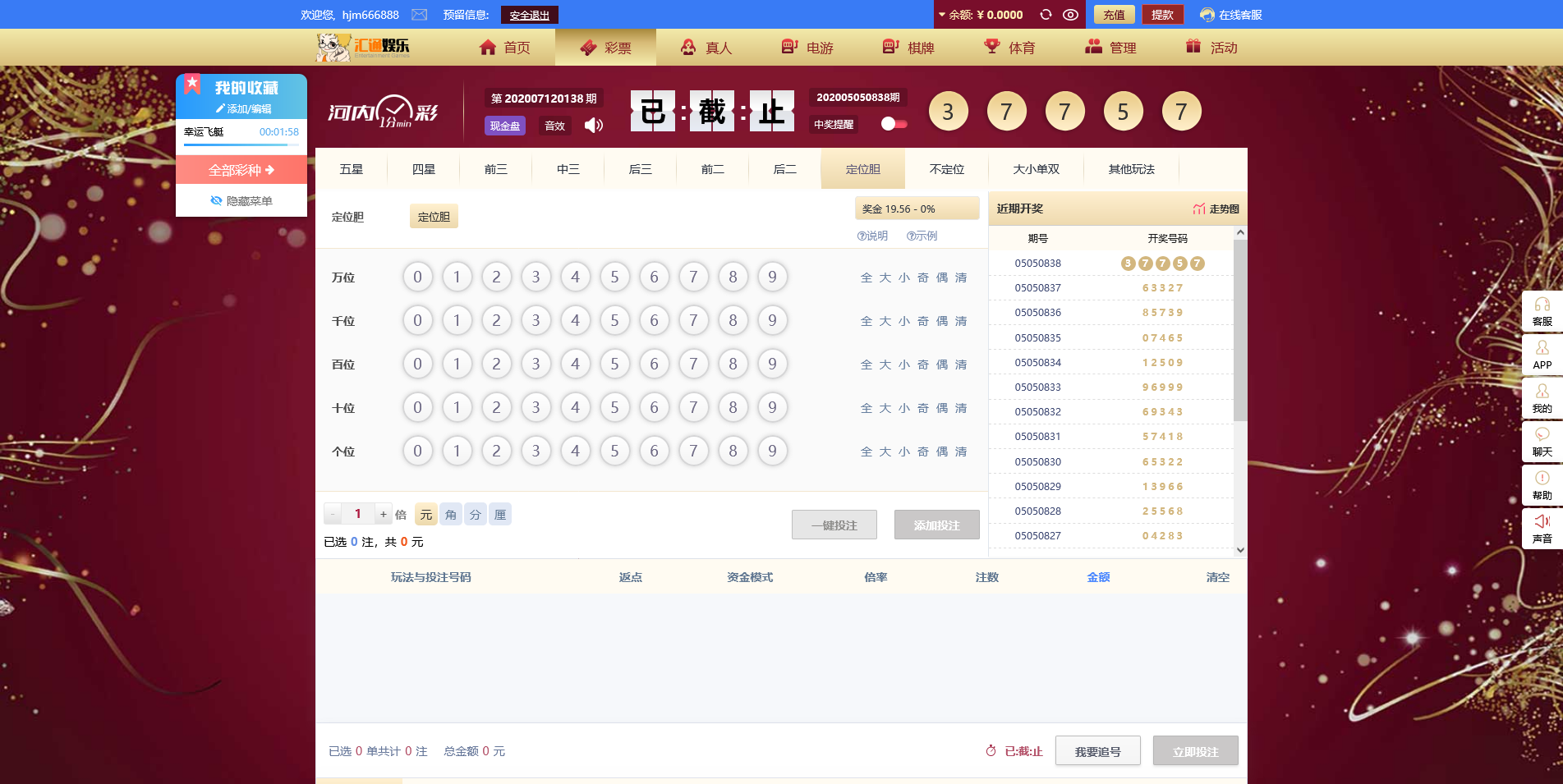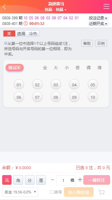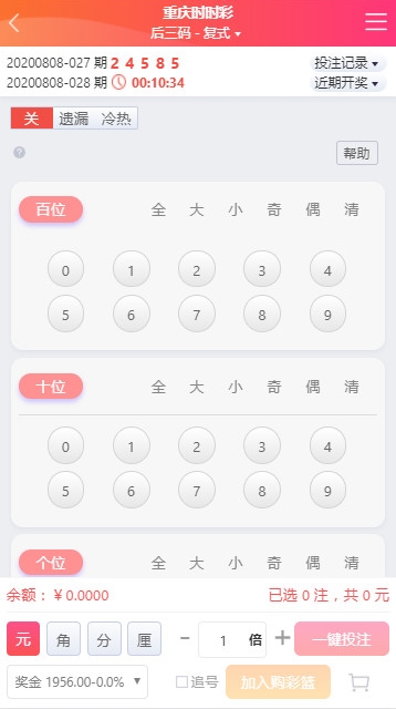 包含追号设置、倍投模式,元、角、分、厘灵活切换,满足不同投注需求。