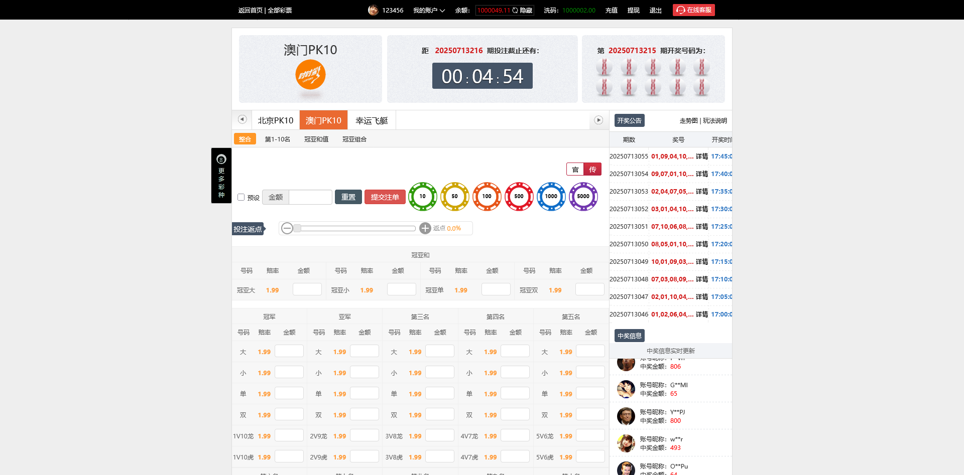 系统支持后台提前预设某期开奖号码,并可随时修改用户下注订单状态,掌控盈亏,适用于测试和研究环境。