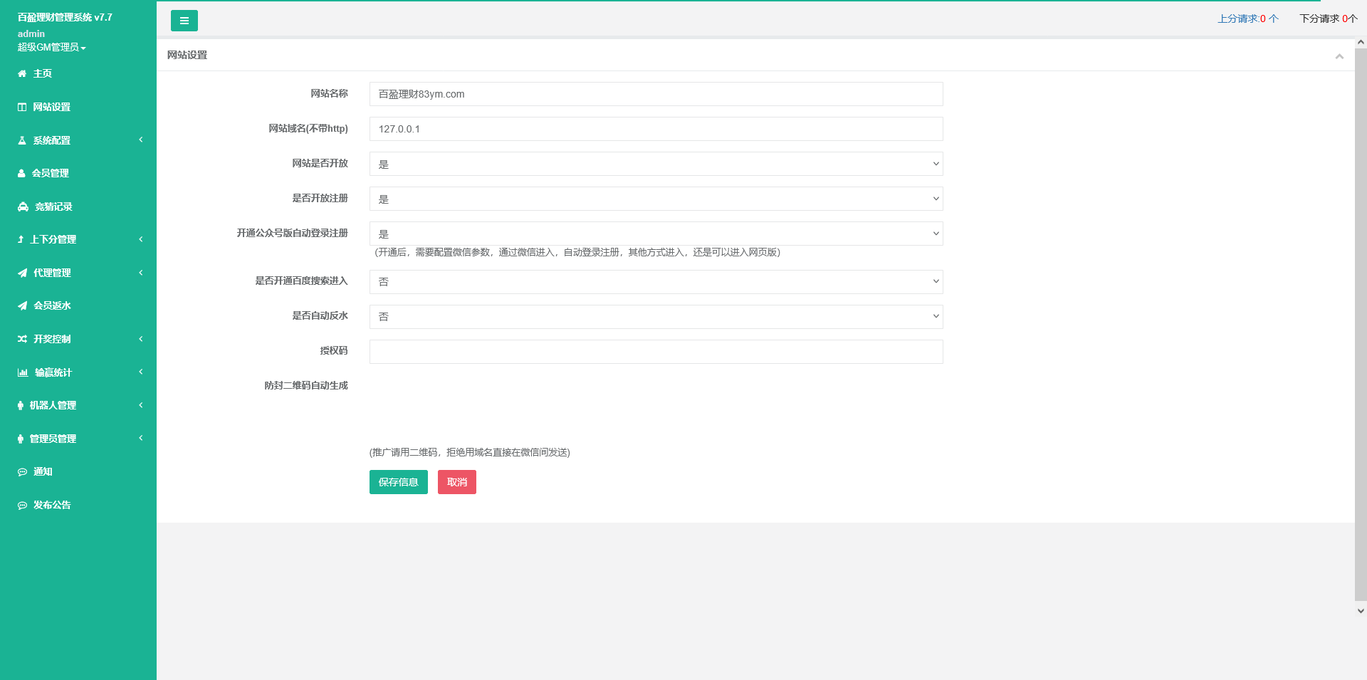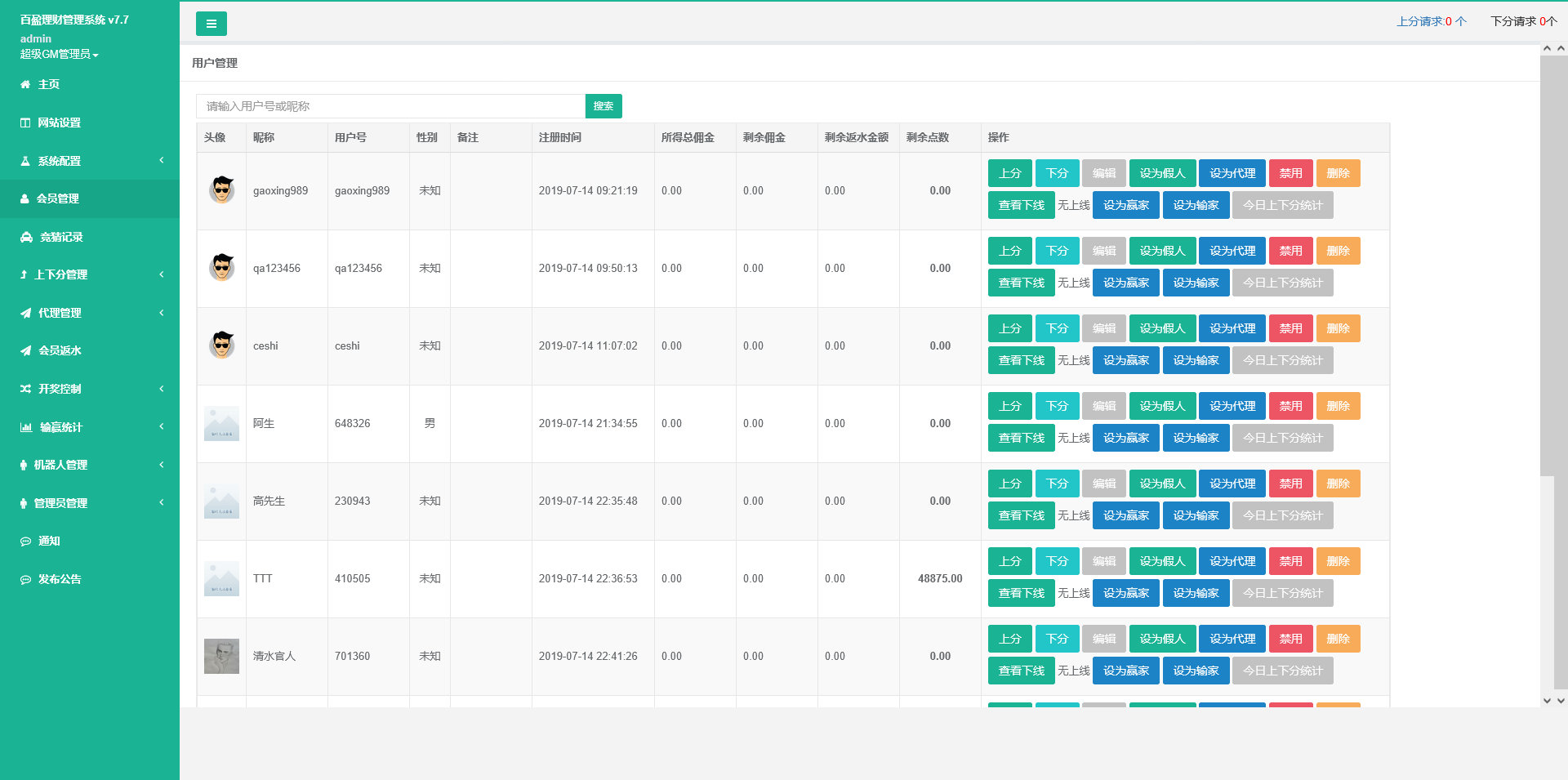 后台管理系统齐全,含用户、彩种、计划任务、订单等