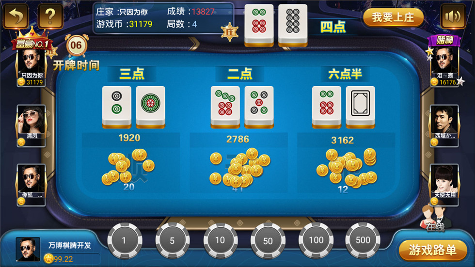 丰富的子游戏合集:包含17款经典棋牌游戏,如百人牌九、通比牛牛、抢庄牛牛、二八杠、捕鱼、百人牛牛、斗地主、轮盘、21点、龙凤斗、百家乐、炸金花、红黑大战、跑得快、狮子王国、十三水、三公、水果机等。