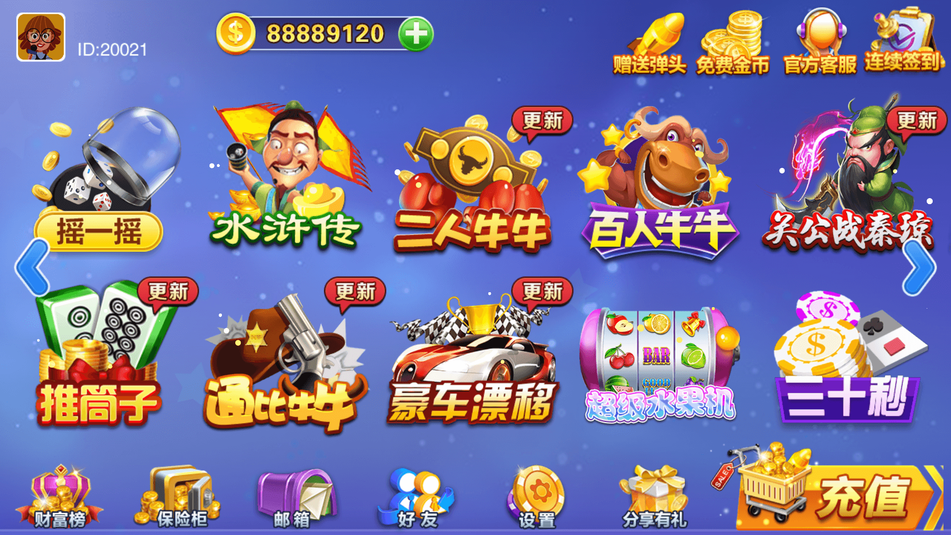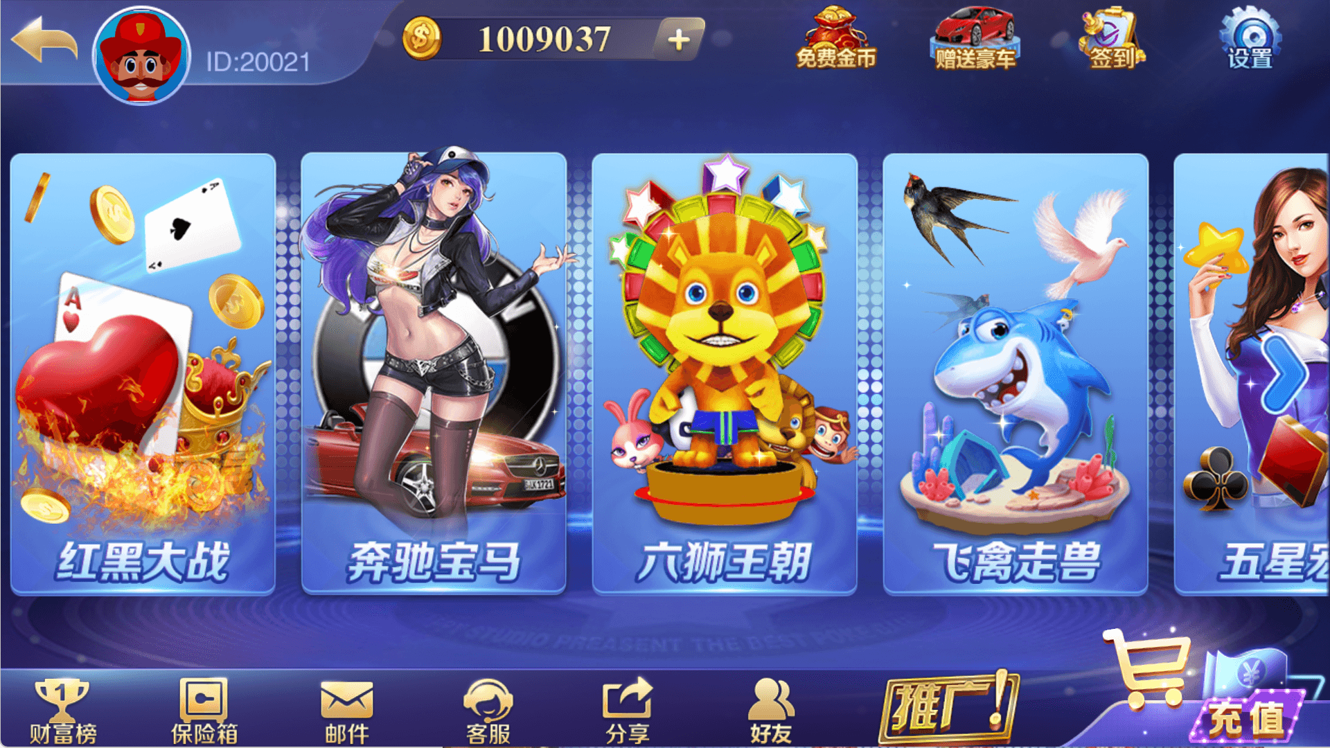 宝马游戏、六狮王朝、飞禽走兽、五星宏辉、金鲨银鲨、水果机、森林舞会、关公战秦琼、百人牛牛、豪车漂移、百人乐、摇一摇、推筒子、红黑大战、龙虎斗、三十秒