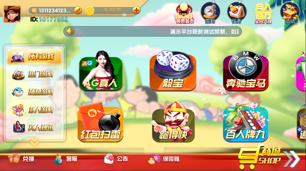 本版本已修复后台与热更新,支持 免短信 游客登录,无需绑定手机号码即可直接体验,操作更加便捷。系统同时支持 真人视讯、彩票、电子、电玩 等多元化玩法,属于综合型棋牌娱乐平台源码组件。