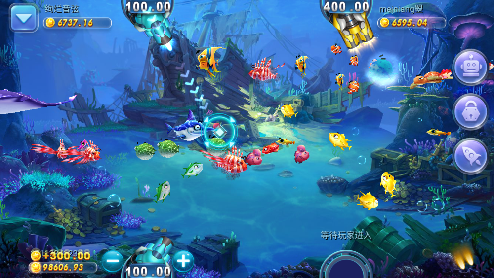 捕鱼电玩:金蟾捕鱼、李逵劈鱼、九线拉王、财神到、水浒传、三国争霸、一球成名。