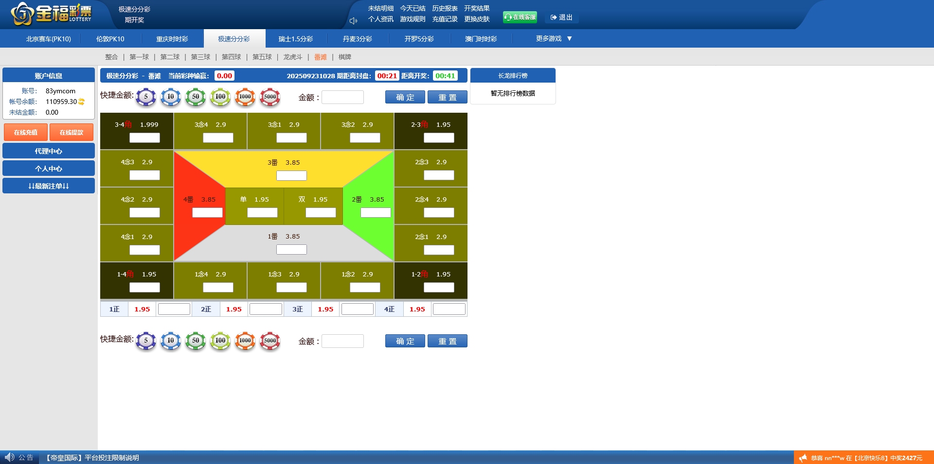 天恒彩天堂金福彩票时时彩平台 AB盘源码,集 彩票 + 真人视讯 + 博弈娱乐 于一体,支持 龙虎斗、番摊、百家乐、斗牛、德州扑克、三公、牛牛 等多玩法。系统搭载 AB盘模式、预设开奖、彩种开关、代理模式,前端提供 红蓝双皮肤,兼容 WEB+WAP双端,功能全面,运行稳定,适合学习研究与二开。