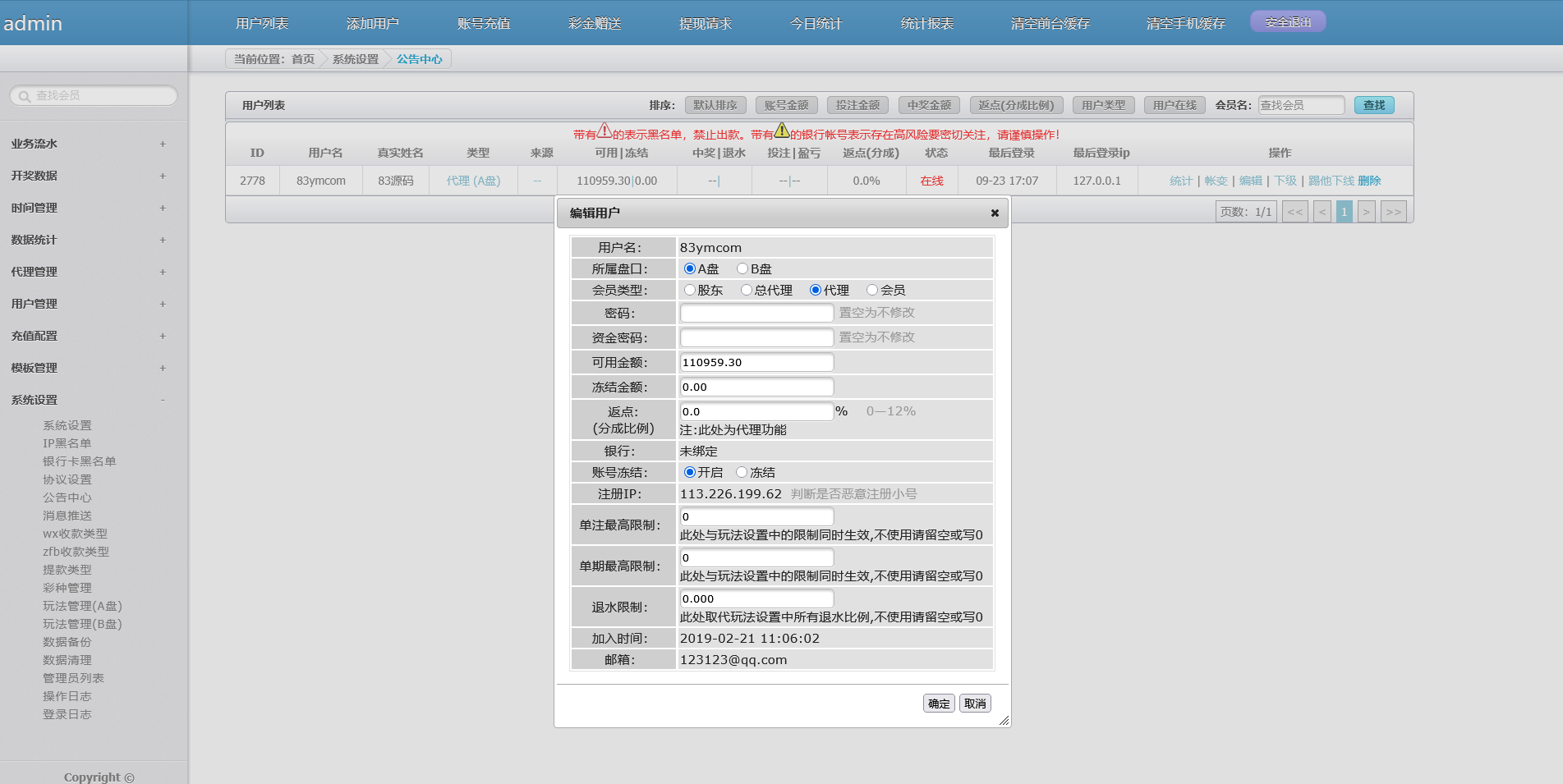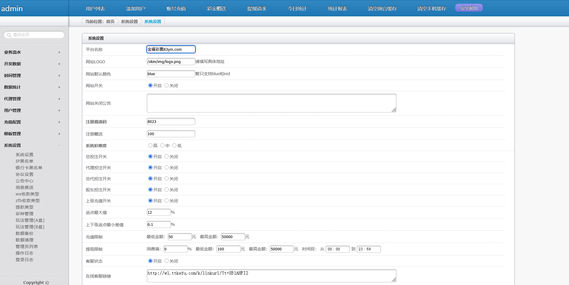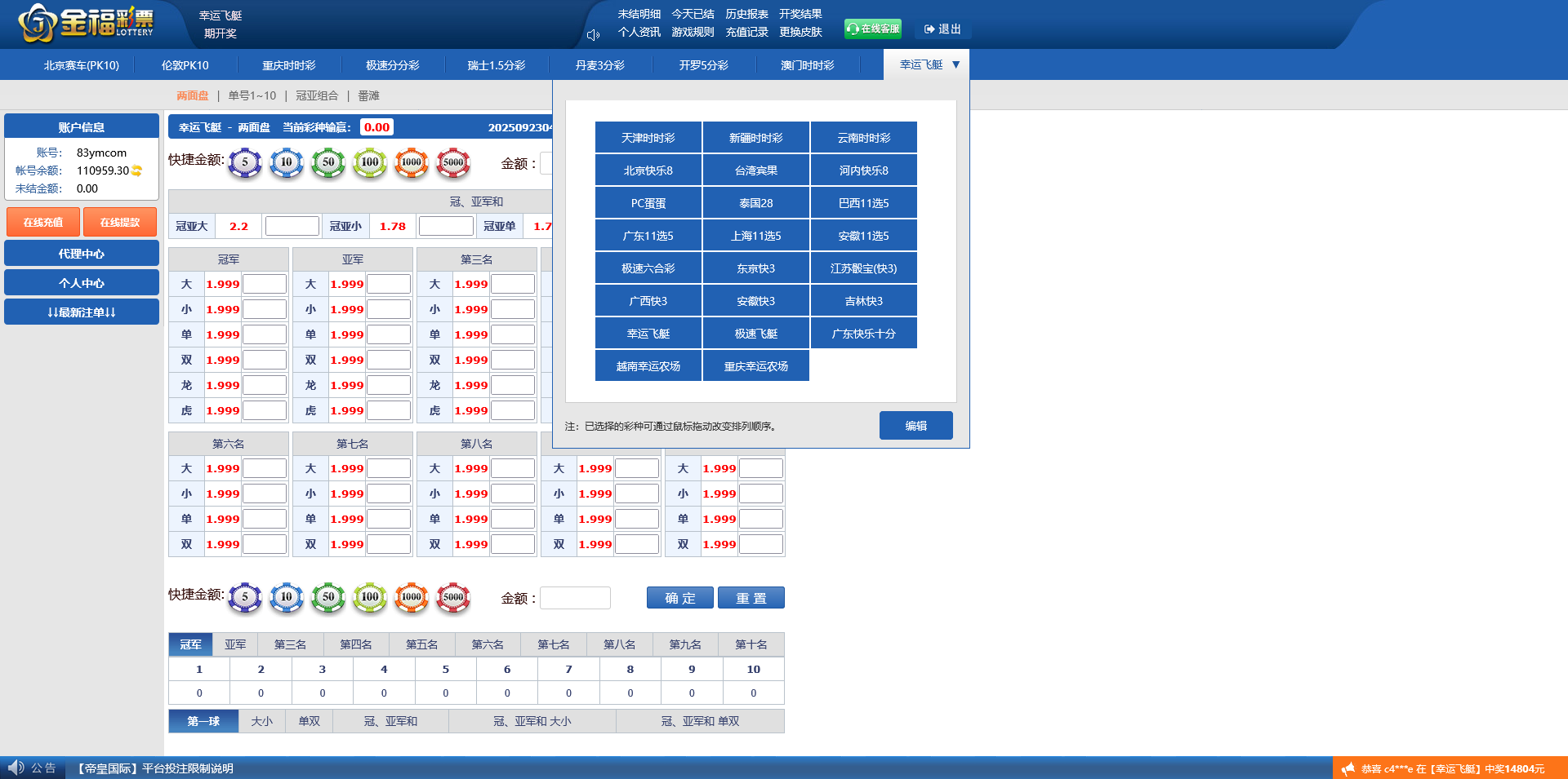 功能齐全:预设开奖、彩种开关、代理系统一应俱全